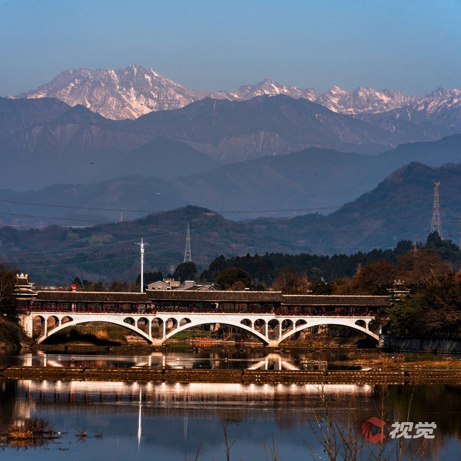 在大邑县新场古镇遥望西岭雪山。李旭 摄