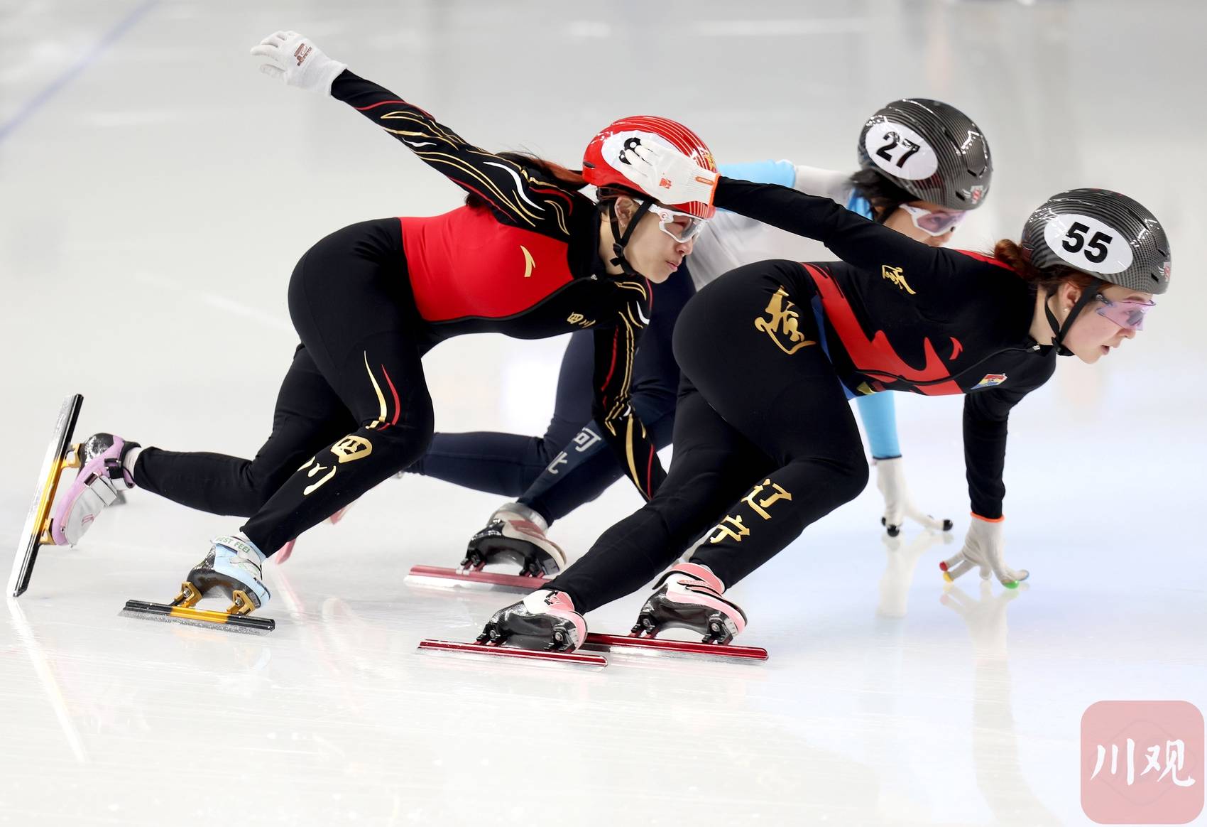 四川女子(右一)选手在1000米速滑比赛中