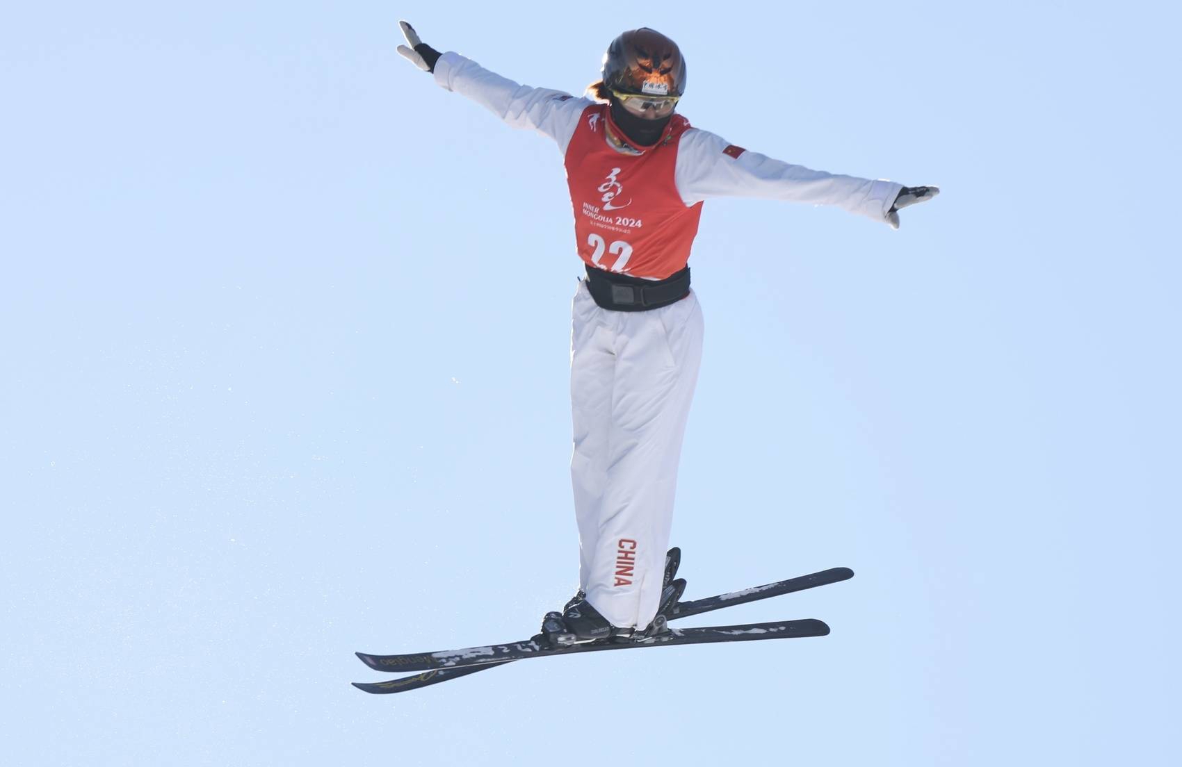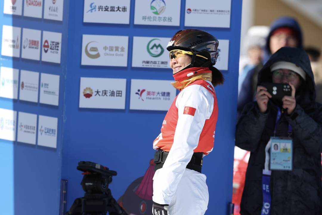 2月21日中午,第十四届全国冬季运动会自由式滑雪女子空中技巧项目在扎兰屯金龙山滑雪场展开。代表黑龙江队参赛的平昌冬奥会季军孔凡钰以94.82分夺得冠军。