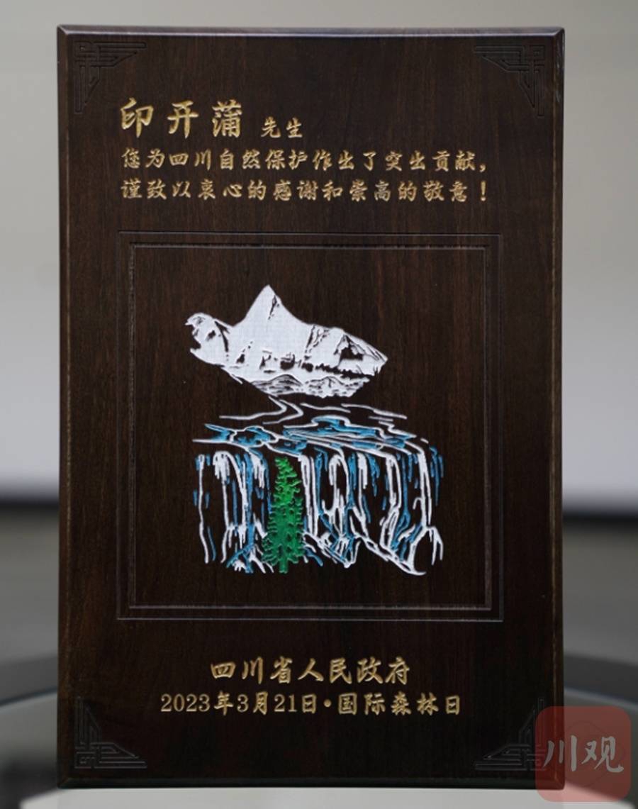“您为四川自然保护作出了突出贡献,谨致以衷心的感谢和崇高的敬意!”奖牌上的短短两行字,概括了印开蒲奋斗一生的事业。