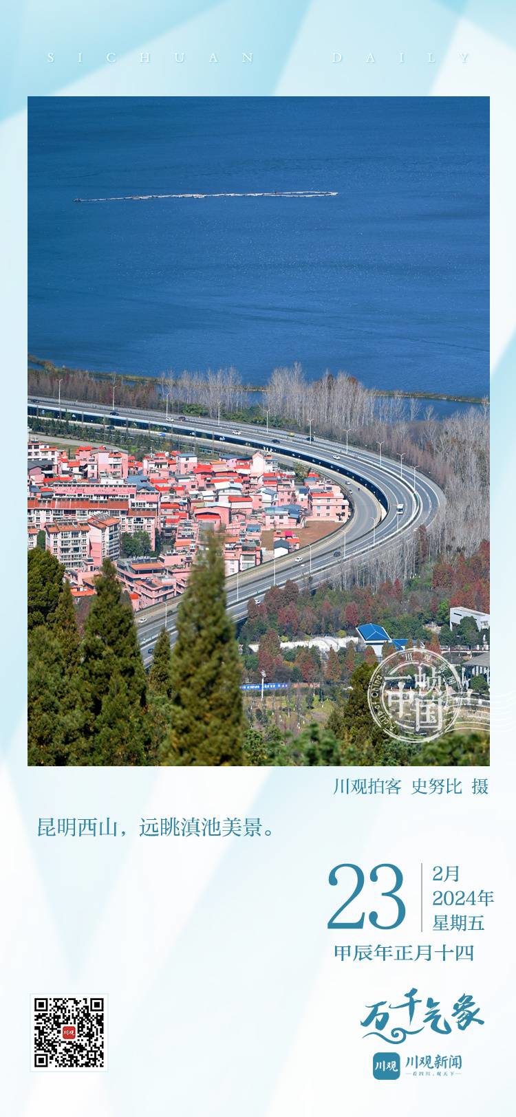 今天的《一帧中国》,带您来到云南昆明,在西山上眺望滇池风光。