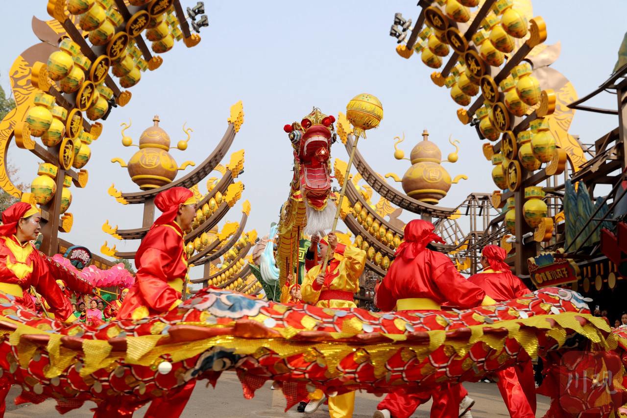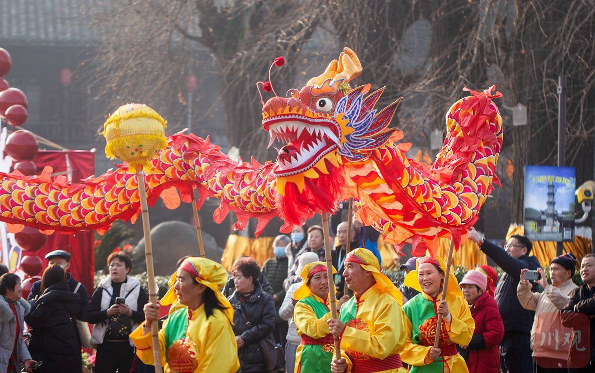 周子古镇景区推出非遗舞龙表演,让市民近距离体验非遗魅力,欢度新春佳节。