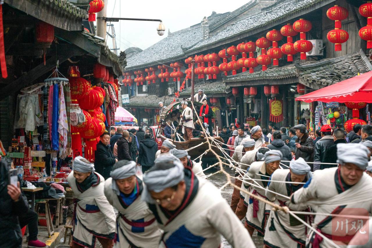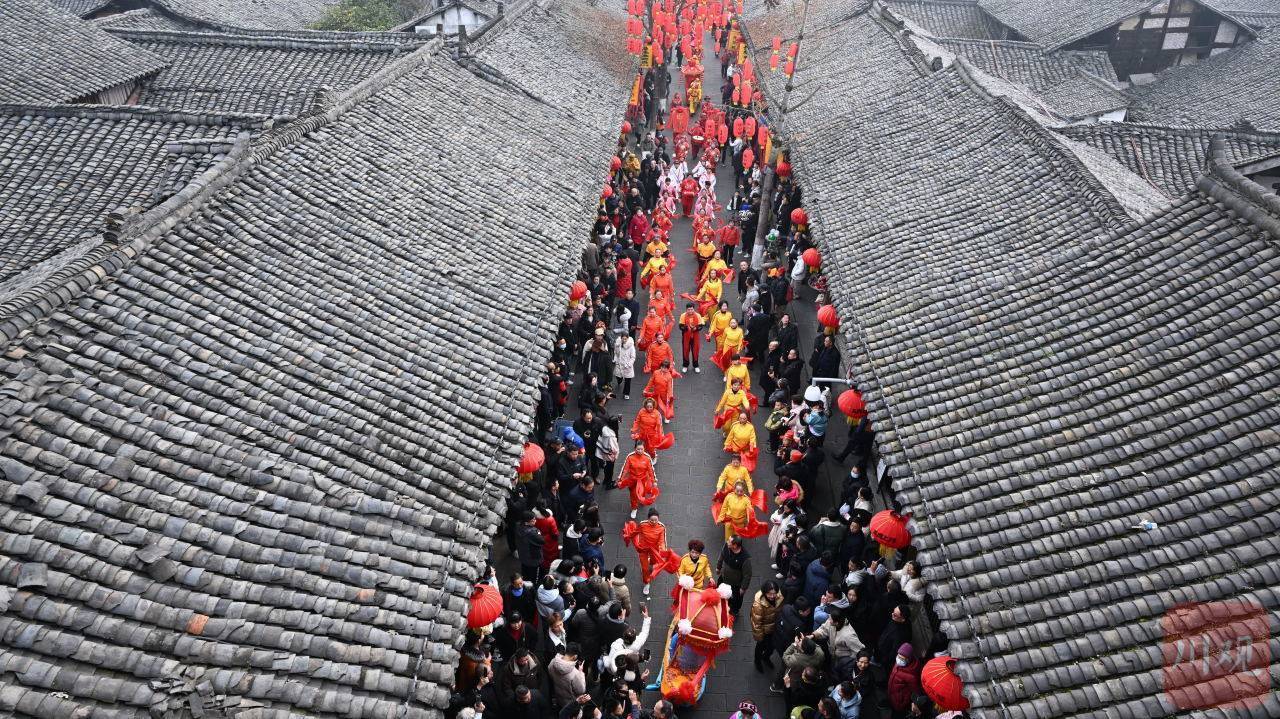 春节期间,阆中古城舞龙表演、张飞巡城、川北上花轿、巴渝鼓等各类民俗表演目不暇接,浓浓的年味吸引游人参与互动,热热闹闹过大年。