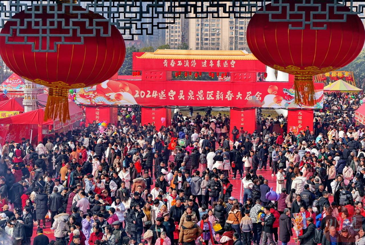 农历大年初一,遂宁市新春大庙会人山人海,市民逛庙会、品美食、许愿祈福、看民俗表演,欢欢喜喜过新年。