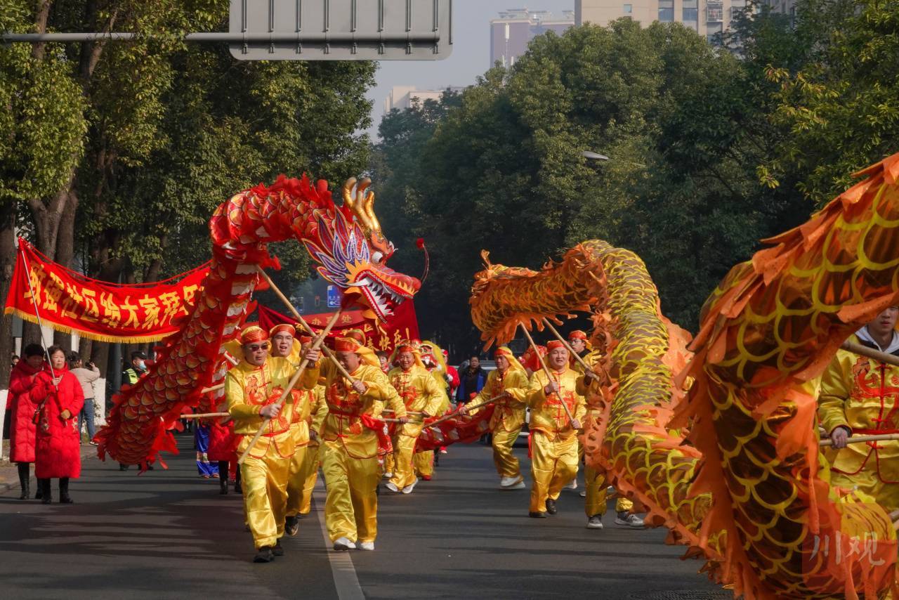 2月10日,农历大年初一,成都市成华区青龙街道组织了一年一度的传统耍龙灯巡游表演,社区居民一起欢欢喜喜、热热闹闹过大年。