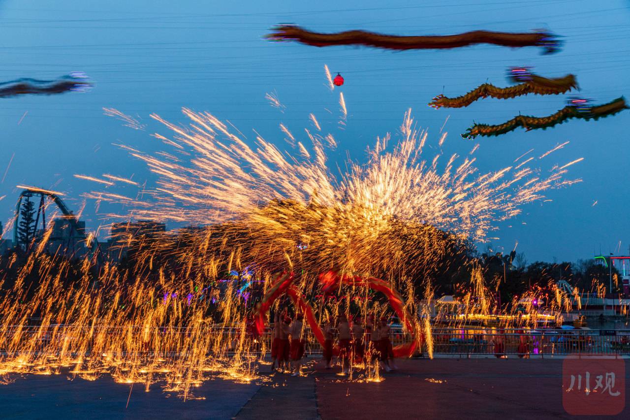 春节期间,成都欢乐谷邀请来自重庆的火龙队表演“龙飞火花溅”,飞龙和火花交相辉映,热闹非凡。