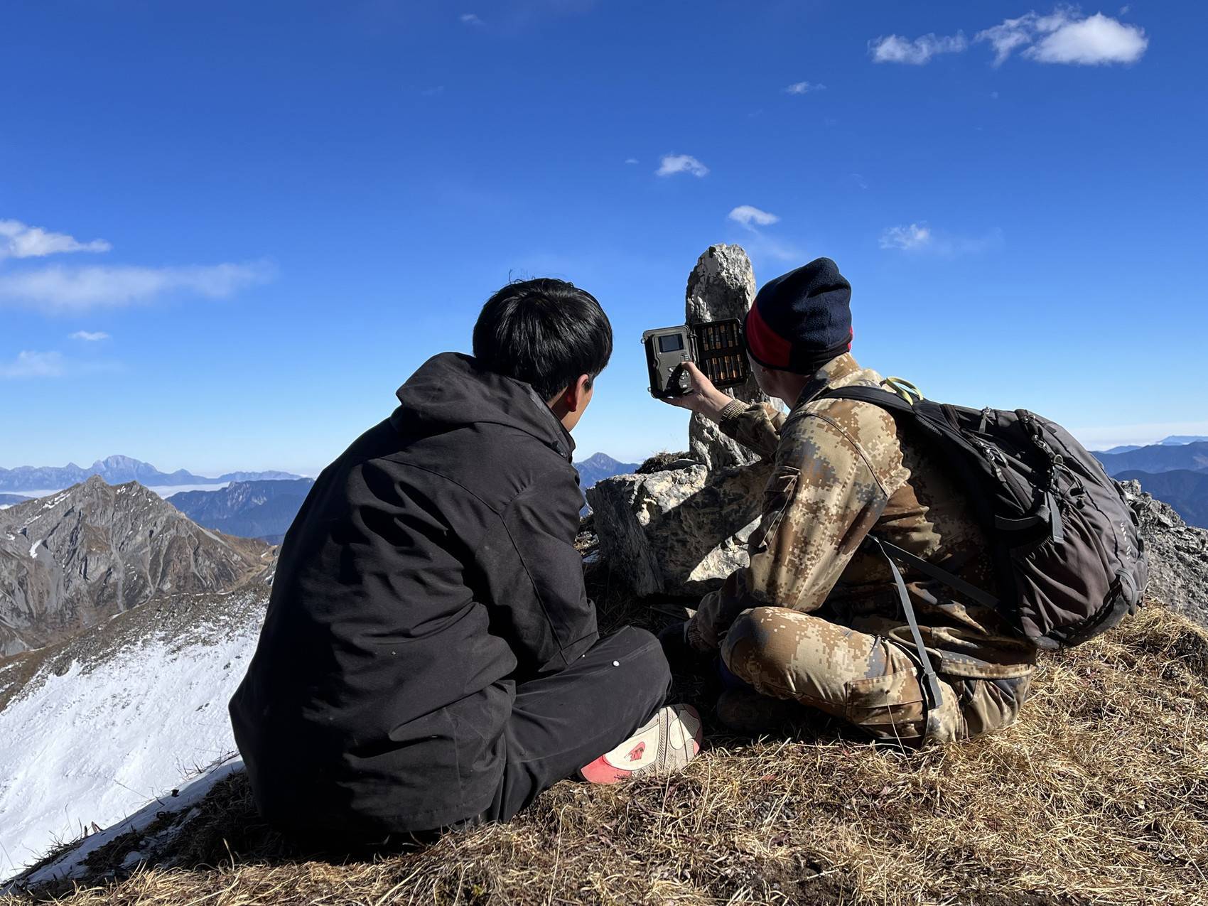 冰雪除了带来寒冷,也可以是巡护员在山里的“玩伴”。梁春平向记者展示的一段拍摄于今年1月份的视频中,在王朗保护区某山顶雪豹观测点附近,梁春平和同事在几十公分厚的积雪上来回跳跃和拍照,开心地像个孩子。“巡护工作本是枯燥的,但每一个新发现都会让我们惊喜,即便只是山顶久违的积雪。”保持初心、保持兴趣、保持热爱,是让他坚守26年的秘诀之一。