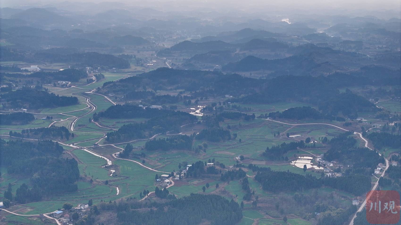 2024年2月24日,在南充市嘉陵区金宝镇高处眺望,只见金宝镇积善社区,槐树坝村等4个村被绿油油的小麦包围,遍地如“绿色地毯”,微风过处,麦苗翻滚,昔日撂荒地如今变成了绿色的海洋。