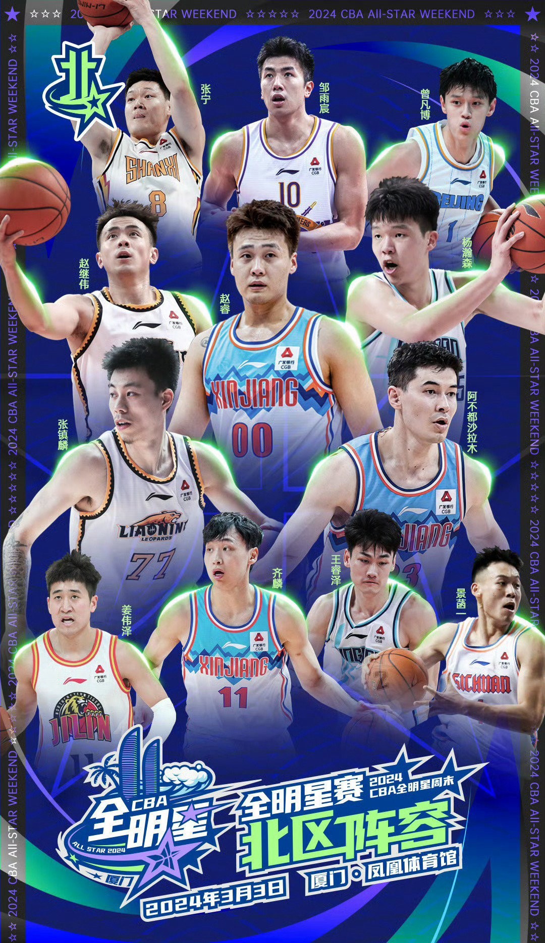 景菡一入选全明星替补阵容海报。来自CBA官方微博