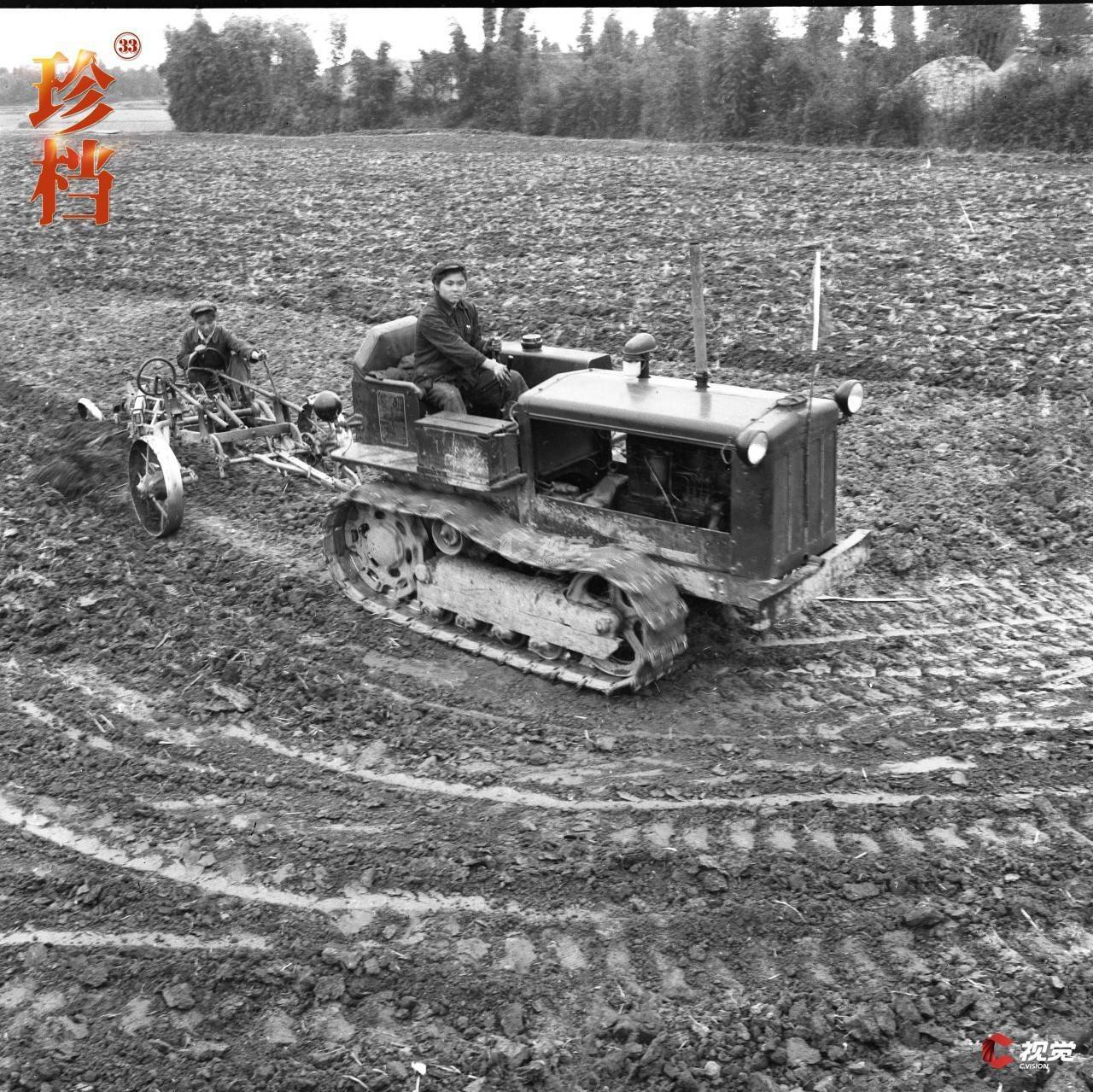 1962年,成都市青白江区拖拉机站为了支援农业,克服了机器设备差等困难,及时帮助铁牛中队进行春耕。张鑫澄 摄