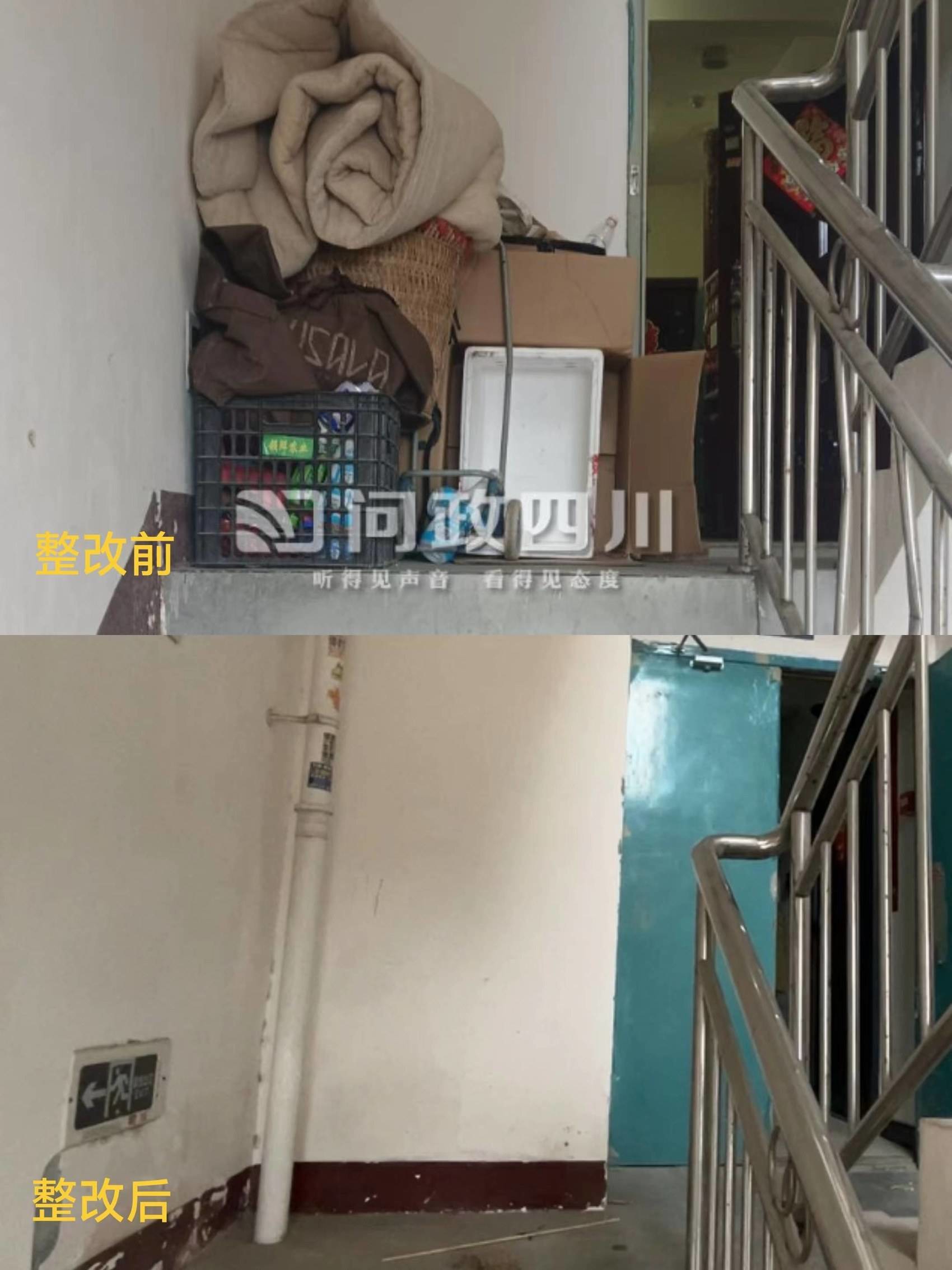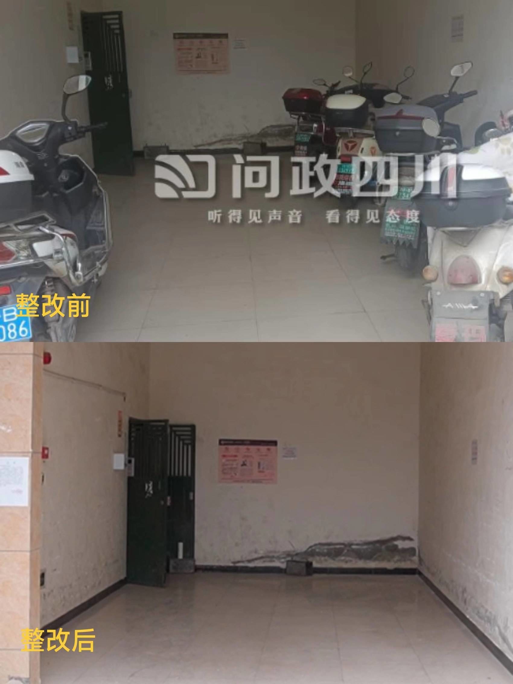绵阳时代名典小区对疏散通道违规停放电动自行车情况进行了整改。