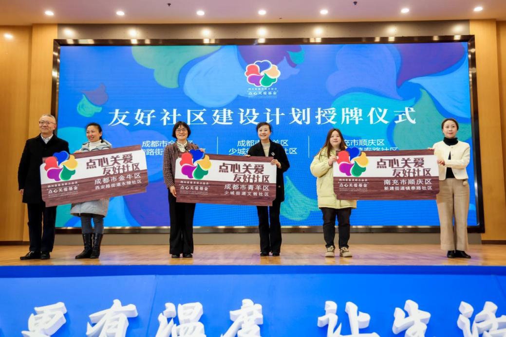 活动现场回顾了基金设立三年来的点点滴滴,感恩社会各界爱心人士、企业一路相伴。孤独症儿童们用空灵鼓现场演奏了歌曲《中华孝道》。现场还为“点心关爱基金”“友好社区建设计划”合作社区授牌。2023年10月起,“点心关爱基金”分别在成都、南充等地启动“友好社区建设计划”,聚焦“一老一小”,携手各方力量搭建社区支持中心,构建社区帮扶体系,系统、科学、有效地为孤独症、阿尔茨海默病群体及其家庭提供支持。