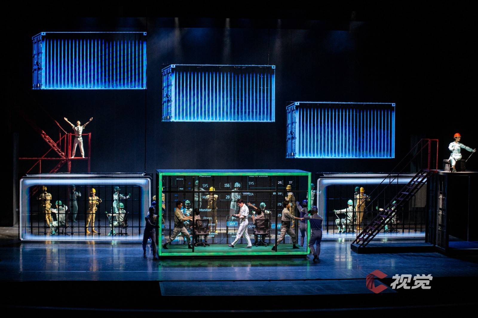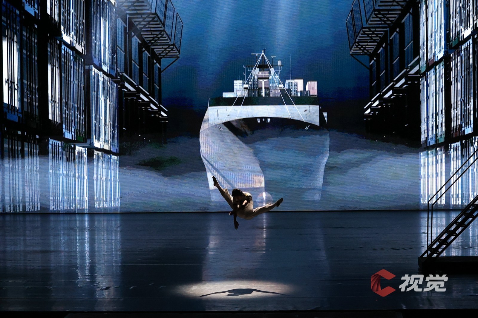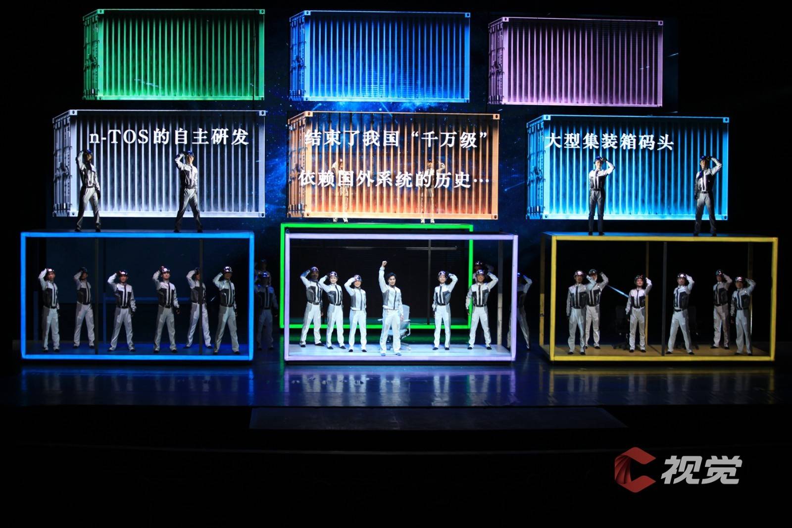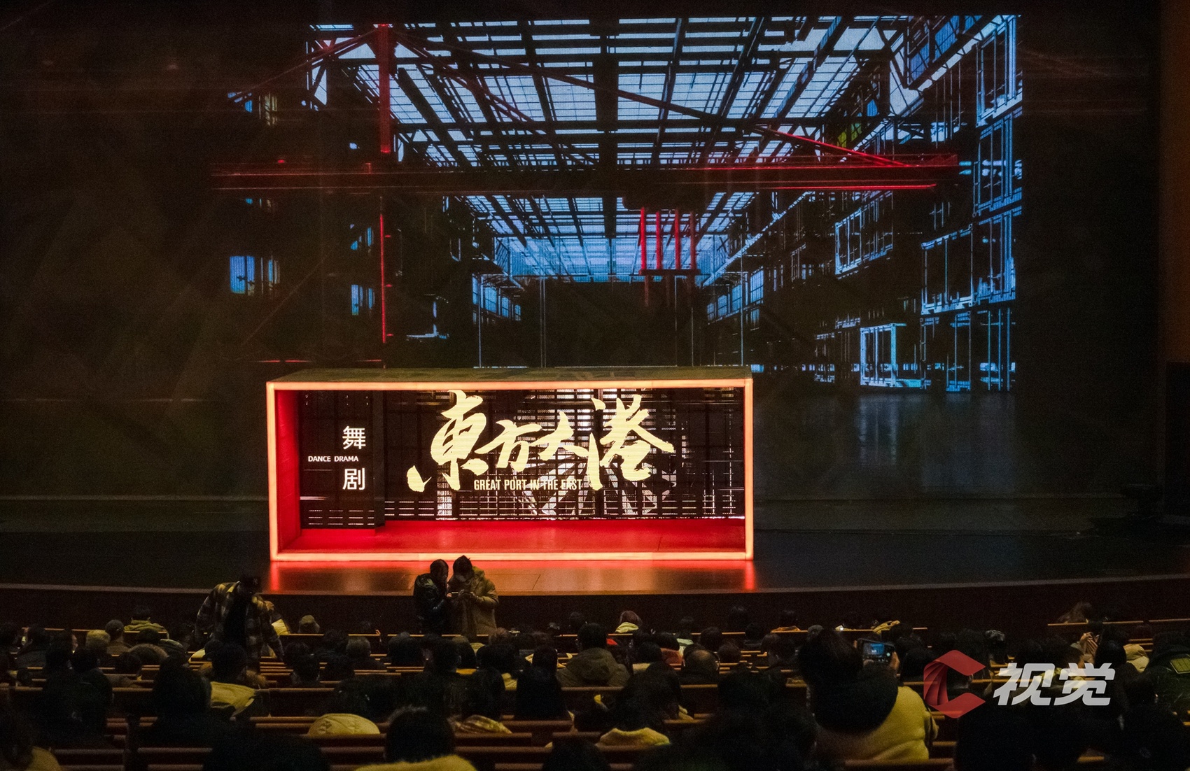 演出当晚大幕拉开的那一刻,恢弘大气的场面裹挟着巨轮泊位的史诗感扑面而来,桥吊高耸如林、集装箱层层堆砌、运输车辆川流不息……舞剧在港口繁忙的工作日常中徐徐展开。港口第一代建设者“海”“鸥”,义无反顾地加入新中国港口建设的热潮,新一代港口人“港”“湾”,在现代化港口建设的洪流中,寻找科技突破,勇立潮头。与外方的对峙谈判、反复陷入瓶颈的科研实验、海边月下两个年轻人相互慰藉……在“港、城、人”三者紧密生动的铺叙中将小人物的奋斗史融入大时代的发展史,《东方大港》为“硬核”力量包裹上了温暖的人间烟火。受邀的C视觉摄影师在接受采访时表示,“这部作品在舞台调度、视觉空间,还有演员的表现上都非常令人惊喜,不管是感受海港图景、了解港口故事,还是单纯热爱舞蹈的观众,《东方大港》都值得一看。”