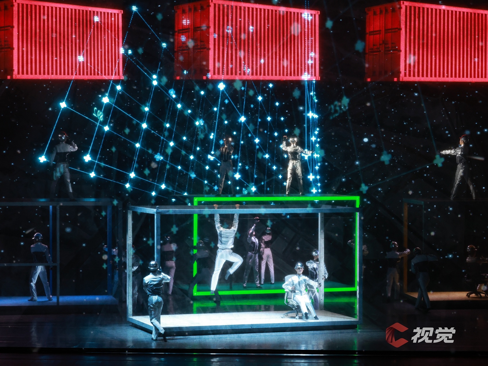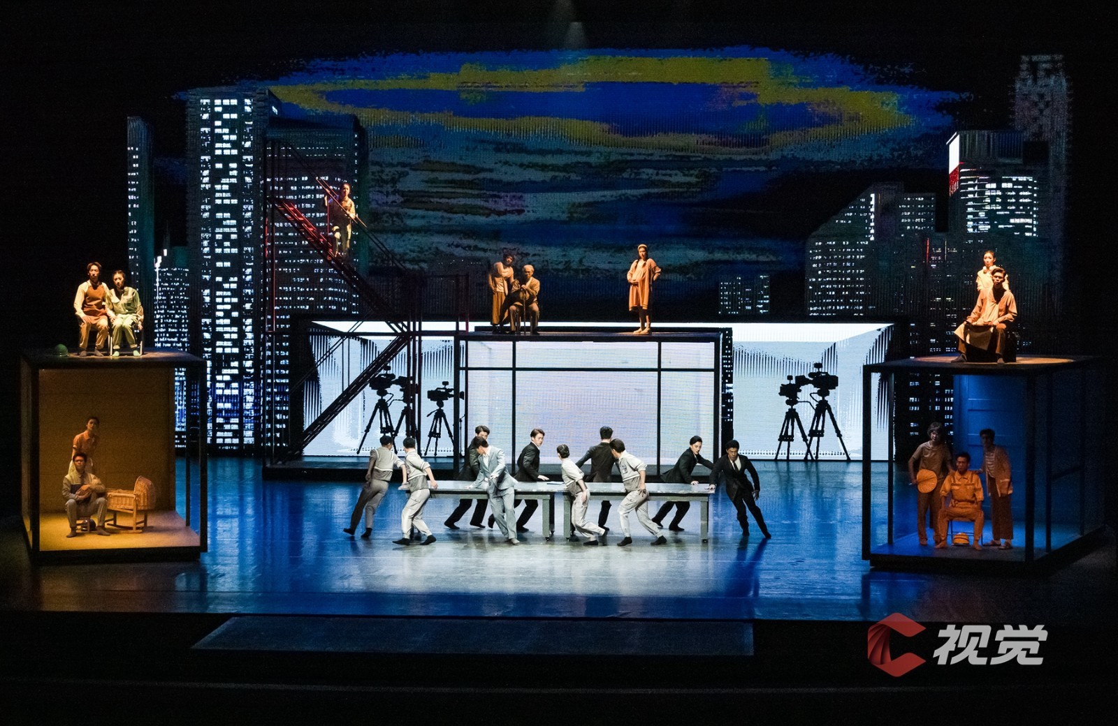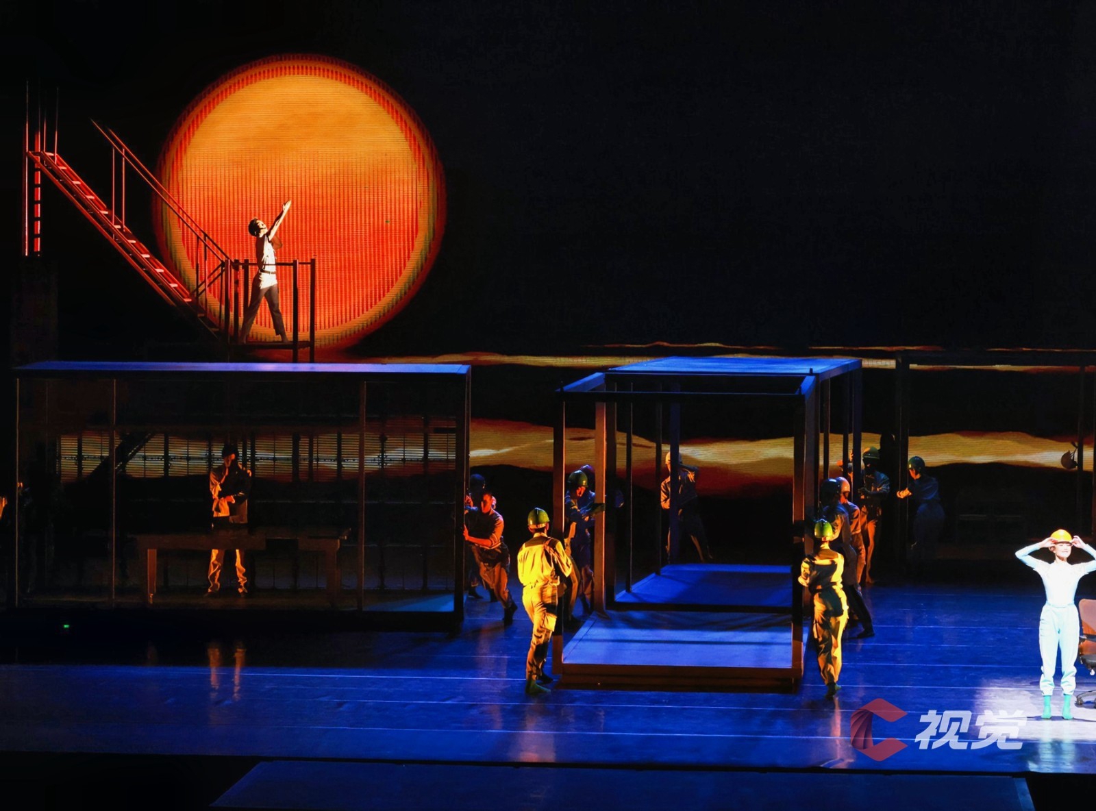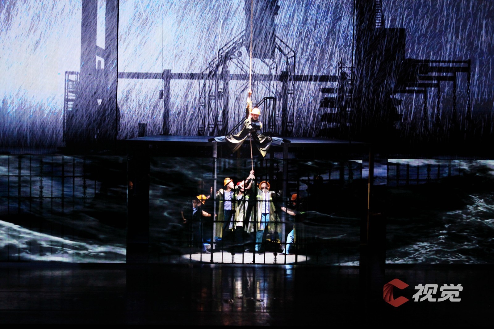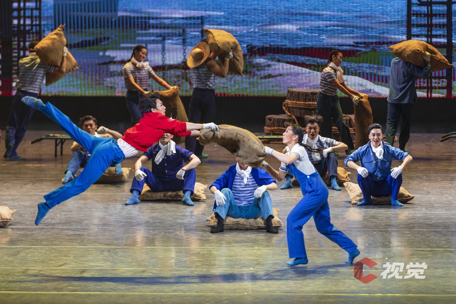 演出当晚大幕拉开的那一刻,恢弘大气的场面裹挟着巨轮泊位的史诗感扑面而来,桥吊高耸如林、集装箱层层堆砌、运输车辆川流不息……舞剧在港口繁忙的工作日常中徐徐展开。港口第一代建设者“海”“鸥”,义无反顾地加入新中国港口建设的热潮,新一代港口人“港”“湾”,在现代化港口建设的洪流中,寻找科技突破,勇立潮头。与外方的对峙谈判、反复陷入瓶颈的科研实验、海边月下两个年轻人相互慰藉……在“港、城、人”三者紧密生动的铺叙中将小人物的奋斗史融入大时代的发展史,《东方大港》为“硬核”力量包裹上了温暖的人间烟火。受邀的C视觉摄影师在接受采访时表示,“这部作品在舞台调度、视觉空间,还有演员的表现上都非常令人惊喜,不管是感受海港图景、了解港口故事,还是单纯热爱舞蹈的观众,《东方大港》都值得一看。”