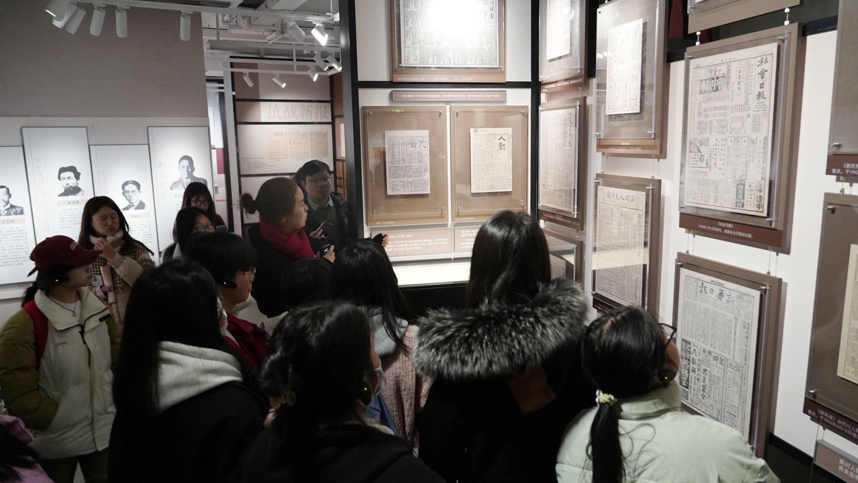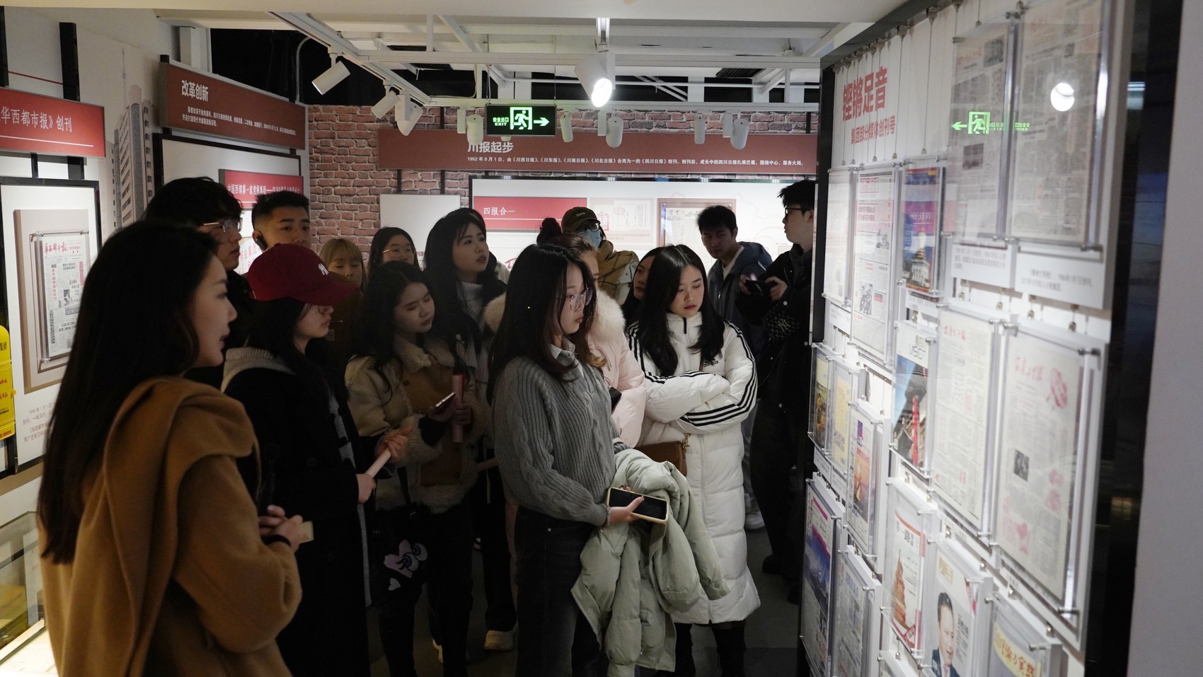 高校师生在四川报业博物馆参观。刘建伟 摄