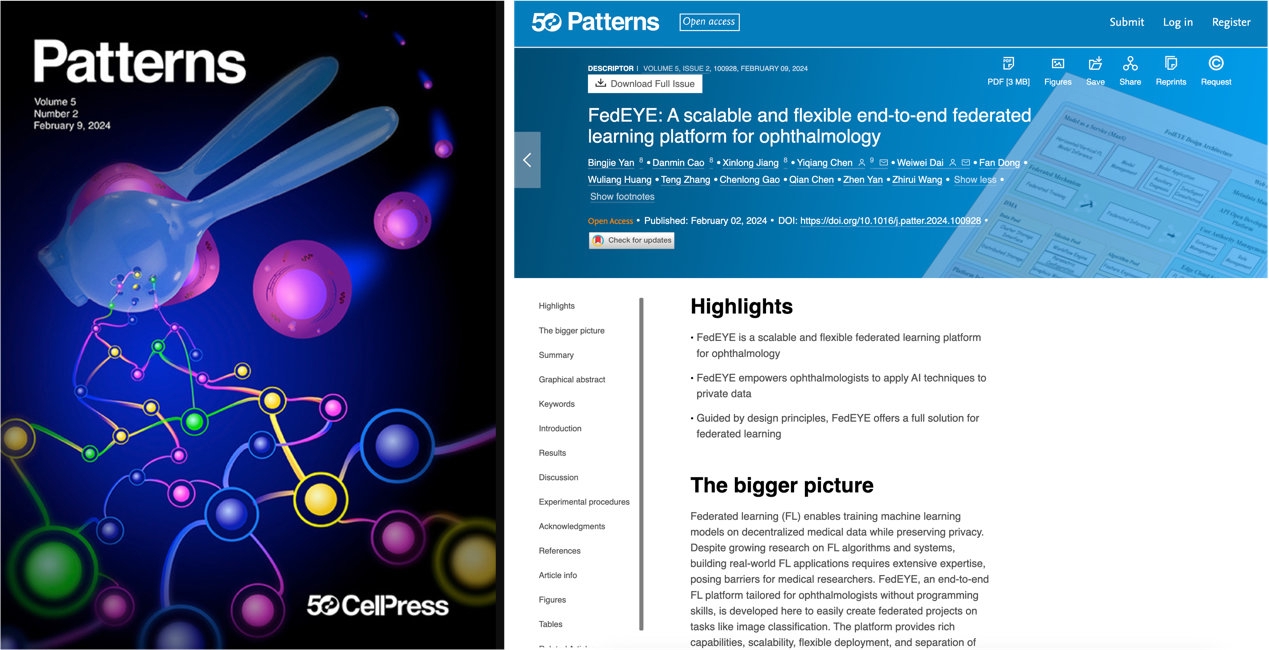 “FedEye眼科联邦学习平台”论文在《Patterns》期刊上发表。