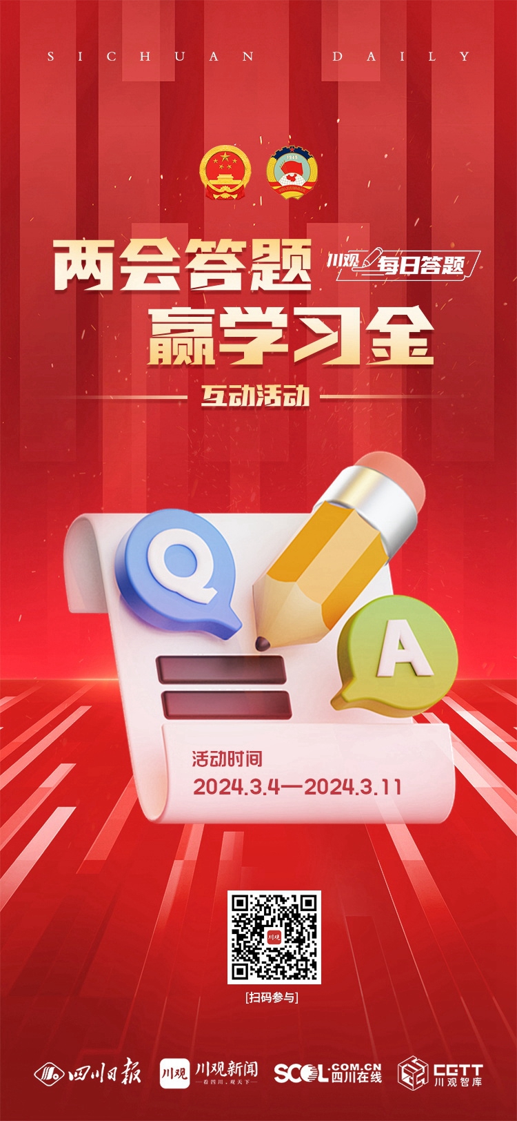 在川观新闻首页顶部搜索框输入“两会答题”,点击活动链接即可参与。