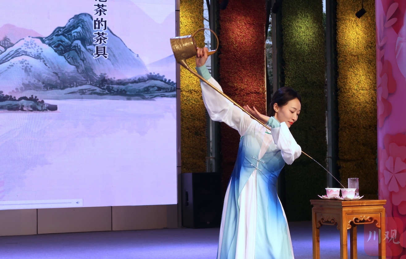 获“四川工匠”称号的茶艺师向春进行茶艺表演