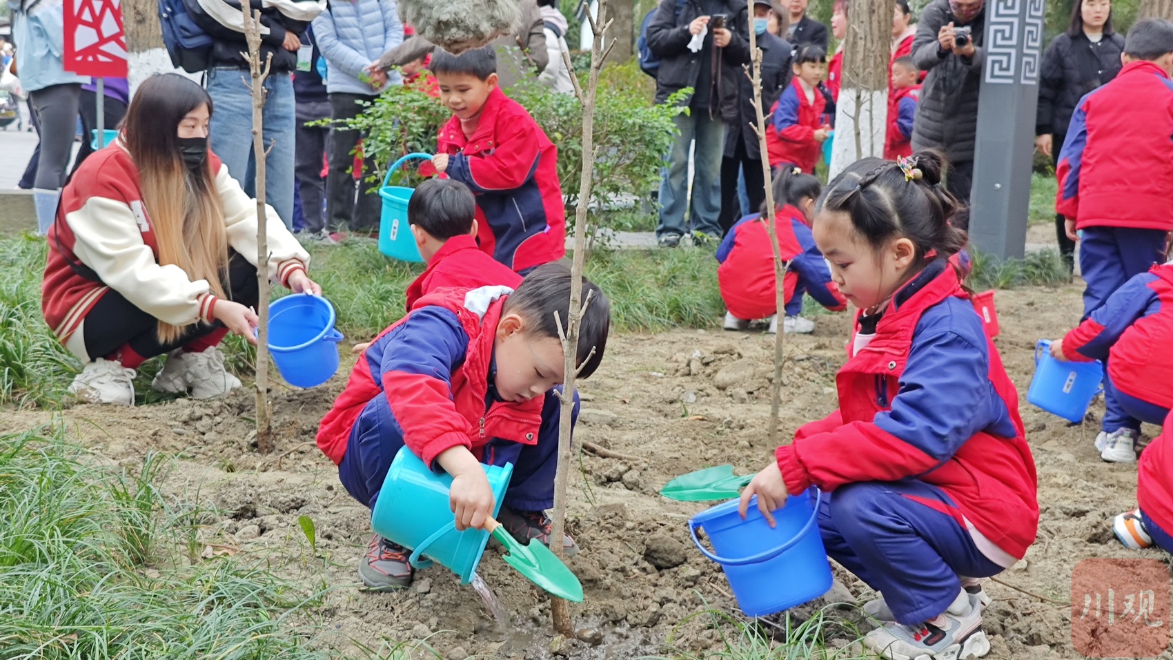活动现场,还有一群可爱的小朋友为大家带来了精彩的节目。随后,孩子们一起挖坑,放苗,填土,浇水……互相合作,亲手种下了小树苗,见证生命的萌发。从意识生根到环保萌芽,这次活动的开展,也为孩子们种下了绿色、低碳、环保的“种子”,让他们进一步了解环保知识、培养环保意识。现场工作人员表示,此次活动旨在提高公众对古树名木的认识和保护意识,为它们的生存和发展创造更好的环境;同时积极响应成都“公园城市”的理念,践行生态文明新时代城市发展道路,打造绿色生态、传承发展的城市标记。