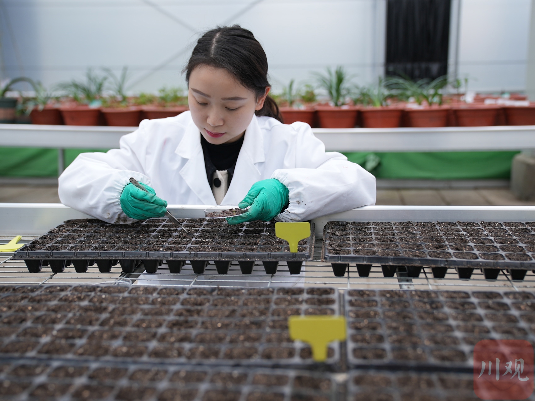 成都市植物园科研苗圃基地,科研人员正加紧进行2万多粒芙蓉的播种工作。