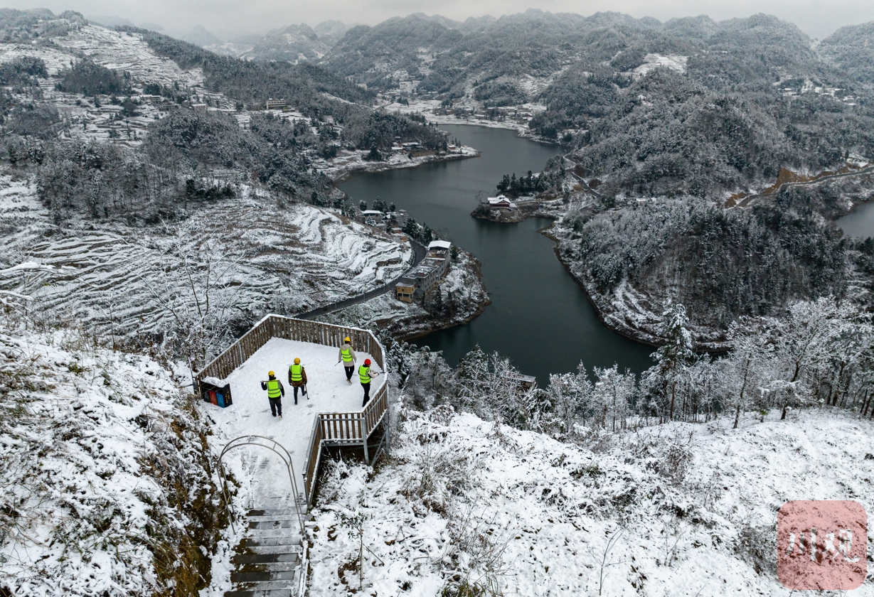 1月23日,雪地里队员在观文镇千鸟湖观察造林情况。