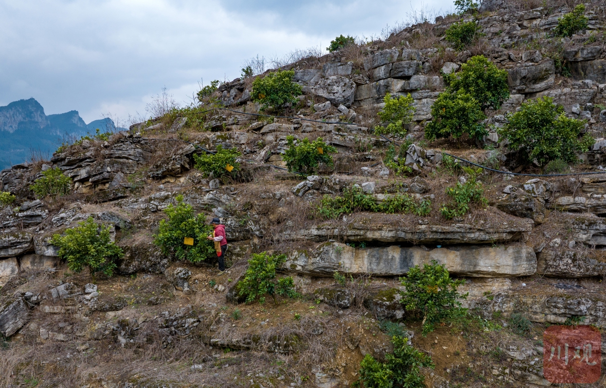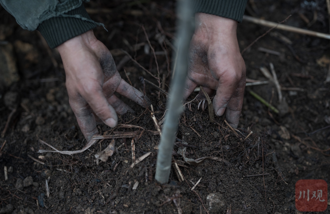 森林有了,绿水青山也就有了,这点家住太平镇九龙村的方战深有体会。为了提升森林质量,800多人的植树队伍在赤水河流域栽种了枫香、楠木、樱花等树木,目的是为了改变之前树种单一的情况,提高生物多样性,增加森林覆盖率。治理工作不光在树种上跟以往有改变,在治理技术从原先的植被恢复拓展至多层次、立体化的治理,包括砌坎培土,增加土层厚度;改土施肥,促进林竹生长;兴池引水,保证用水所需等。山下,椒园乡龙凤村,一弯清水的赤水河向长江奔流而去。另一支植树队伍正在沿河栽种楠木树苗,他们要抢在月底前完成栽种工作。在他们植树地点的山坡上,村里的脐橙产业园中橙红色赤水河脐橙挂在枝头。在石头缝里栽果树,这是前期石漠化综合治理后当地发展特色产业,已经成为群众增收致富的重要来源。