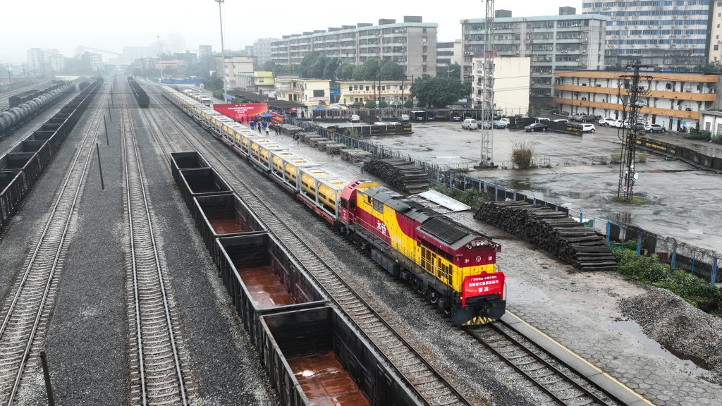 3月15日,一列满载硫酸的罐式集装箱班列从广西防城港站开出,驶向云南昆明中谊村站,标志着我国首趟硫酸罐式集装箱班列顺利发运。