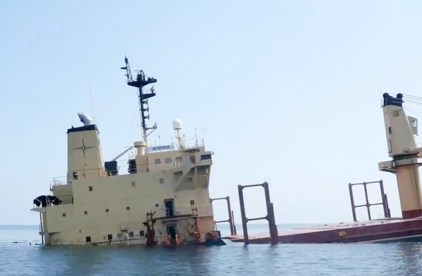 这张拍摄日期不明的照片显示了英国货轮“鲁比马尔”号沉没前的景象。也门政府3月2日发表声明说,受暴风雨影响,此前被胡塞武装导弹击中的英国货轮“鲁比马尔”号1日夜间在也门海岸附近沉没。图据新华社