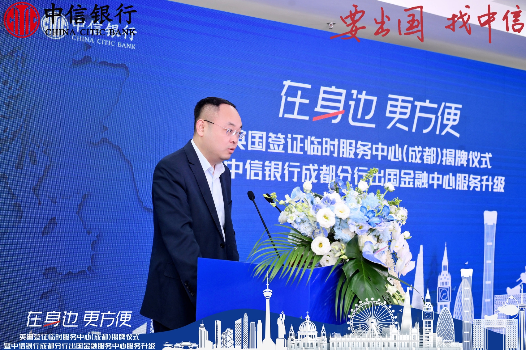 仪式上,中信银行携手威孚仕VFS Global在成都锦绣支行三楼新增英国签证“临时服务点”,作为成都英国签证申请中心的补充,提供英国签证服务。借此双方共同展望国际金融服务生态圈新发展方向。