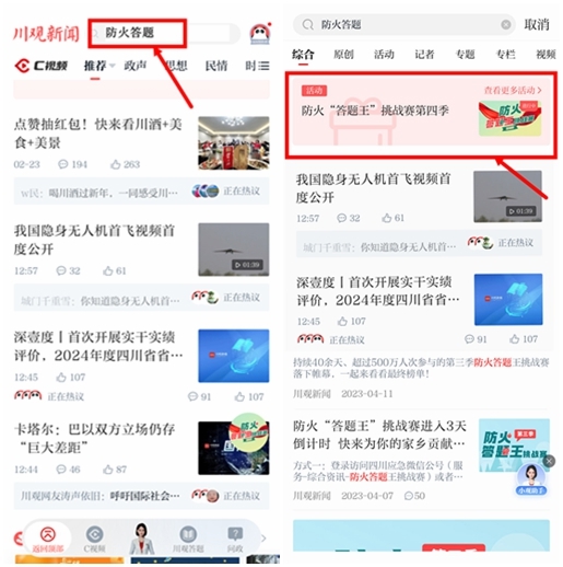 方式四:在川观新闻首页顶部搜索框输入“防火答题”,点击活动链接即可参与。