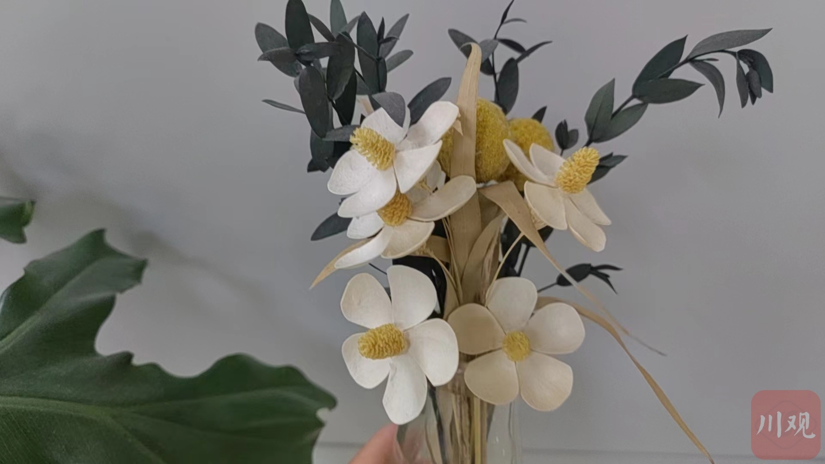 微波炉烘烤 微波炉烘烤是最快的方法,但只适用于较扁平的植物,如雏菊、金盏花、小月季、满天星等。将鲜花平铺在纸上,一朵朵分开距离,避免干后粘连在一起;把纸对半合起来,将植物压在里面;放进微波炉,加热30秒至1分钟就做好了。处理完的干花可做成各式日用品。比如干花蜡烛、干花书签、摆件插花瓶等。