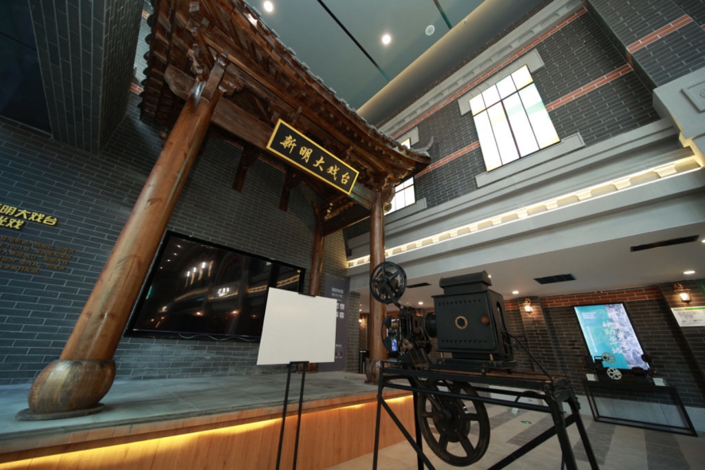 走进全新的新明电影院大厅,一座翘角飞檐的“新明大戏台”迎面而来。1921年,“新明大戏台”由吴铁生和李叔平、张镜清等人集资创立,后来张镜清、廖立夫等人又发起新明电影院,合资租用锦华馆内成都中华基督教青年会体育室,将其改造为电影院,于1924年4月正式开业。