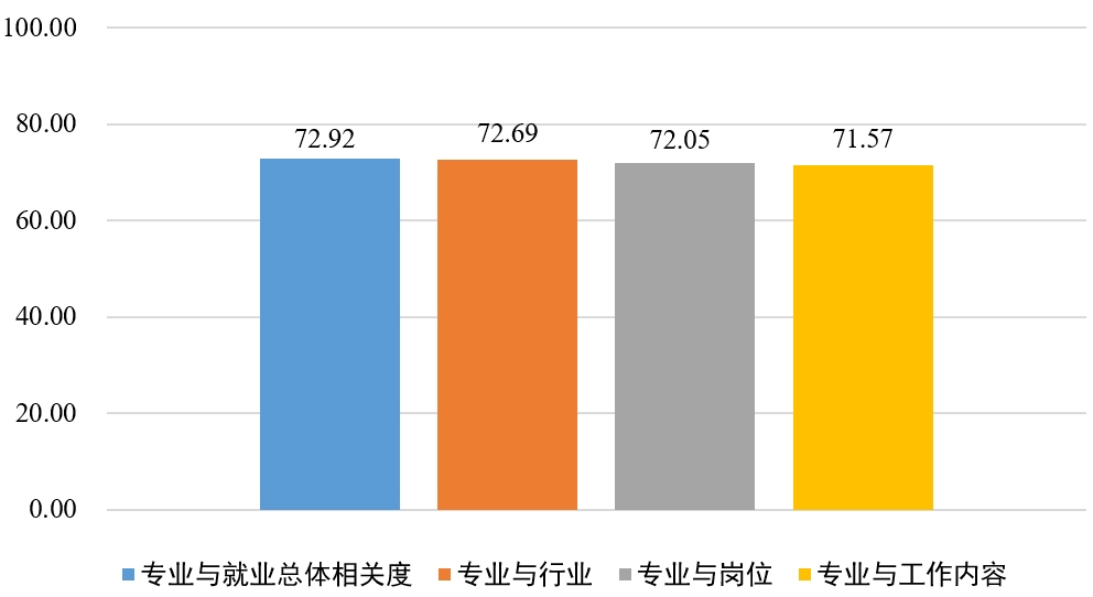 从专业与就业相关度看,2023届高校毕业生专业与就业的总体相关度为72.92%。其中,专业与行业的相关度为72.69%,专业与岗位的相关度为72.05%,专业与工作内容的相关度为71.57%。