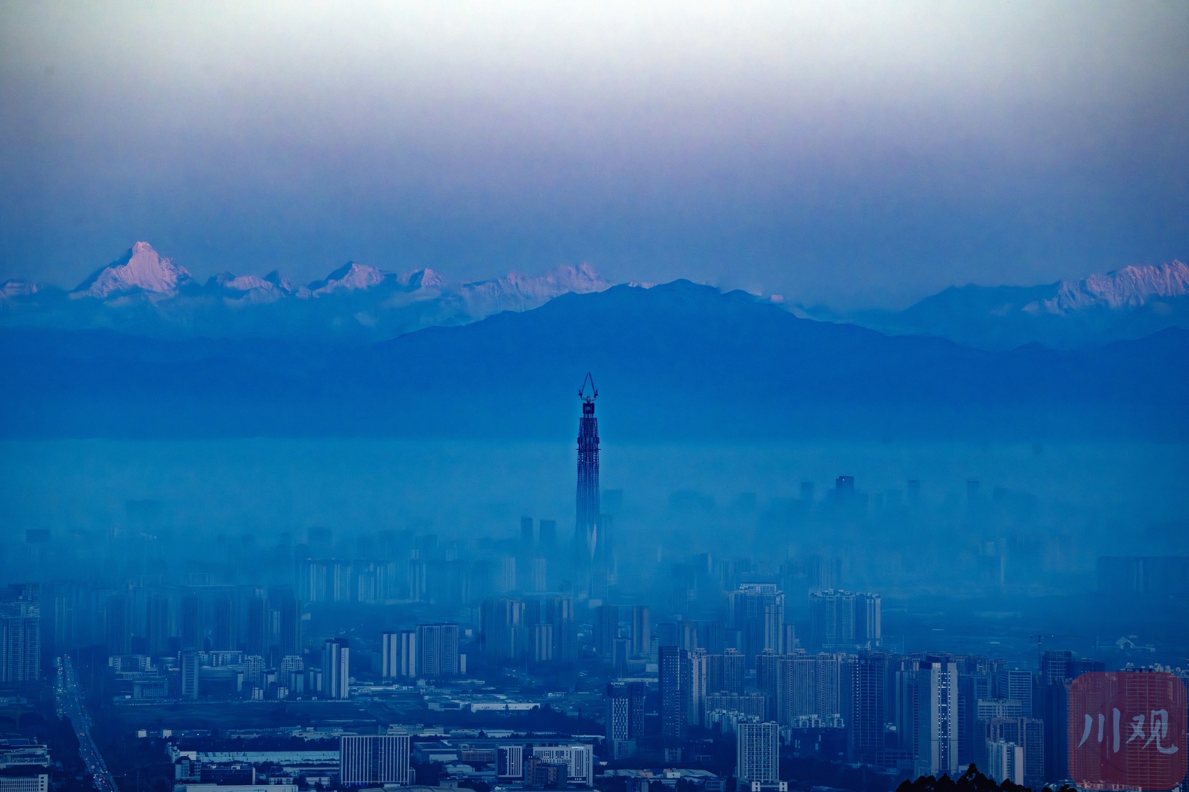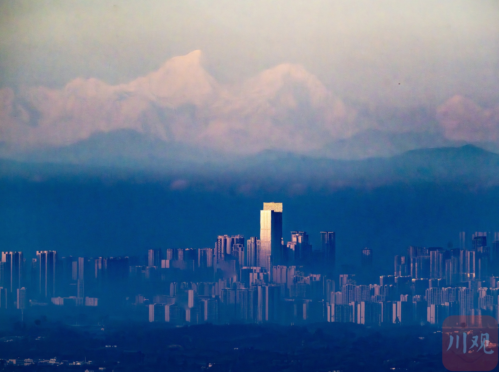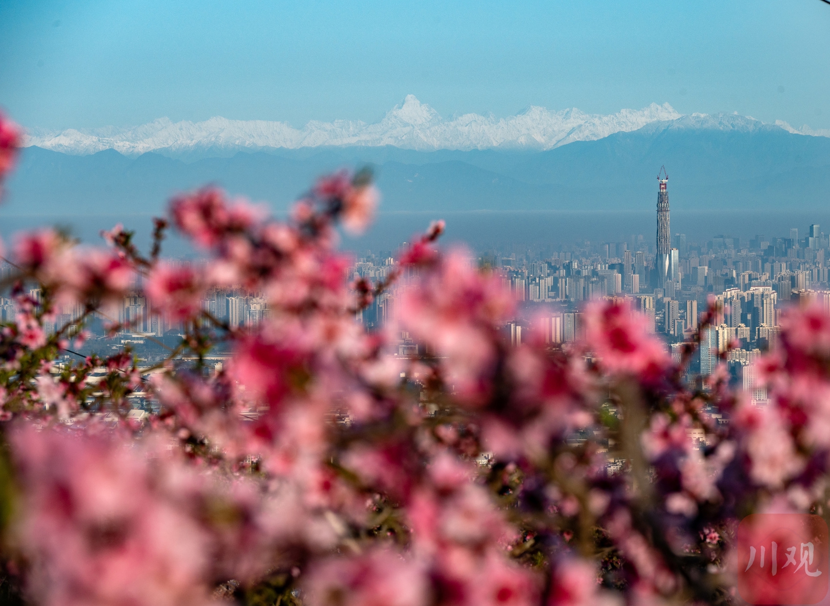 3月25日,成都市区迎来好天气,在龙泉山上能见到四姑娘山与盛开的桃花同框,又成为这个季节的新风景。