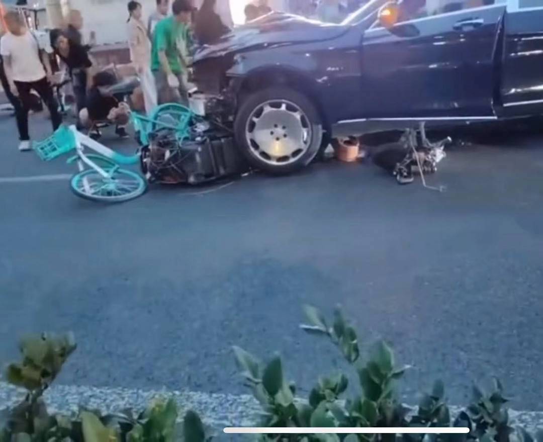 另一段行车记录仪视频显示,这辆黑色轿车在经过某小区门口时,径直冲向非机动车道,将人群冲散,随后飞速撞击多名路人和骑行者后,将一辆共享单车顶了数十米远。