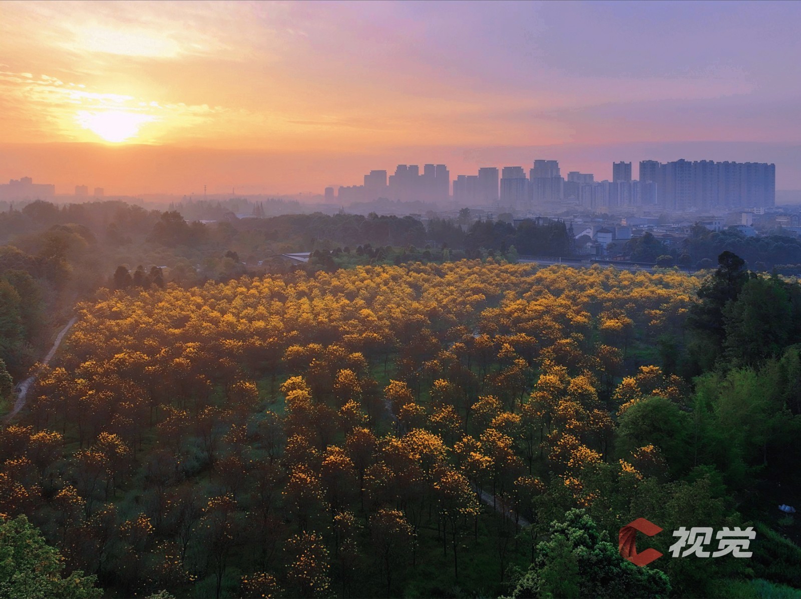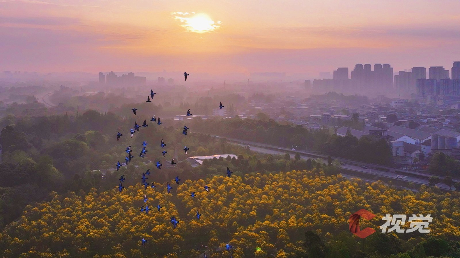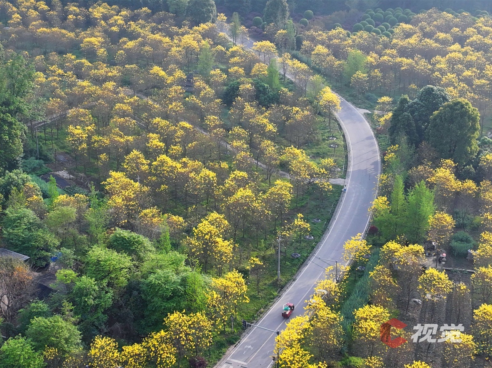 C视觉丨灿烂流“金”!晨光下的黄花风铃木浪漫如画