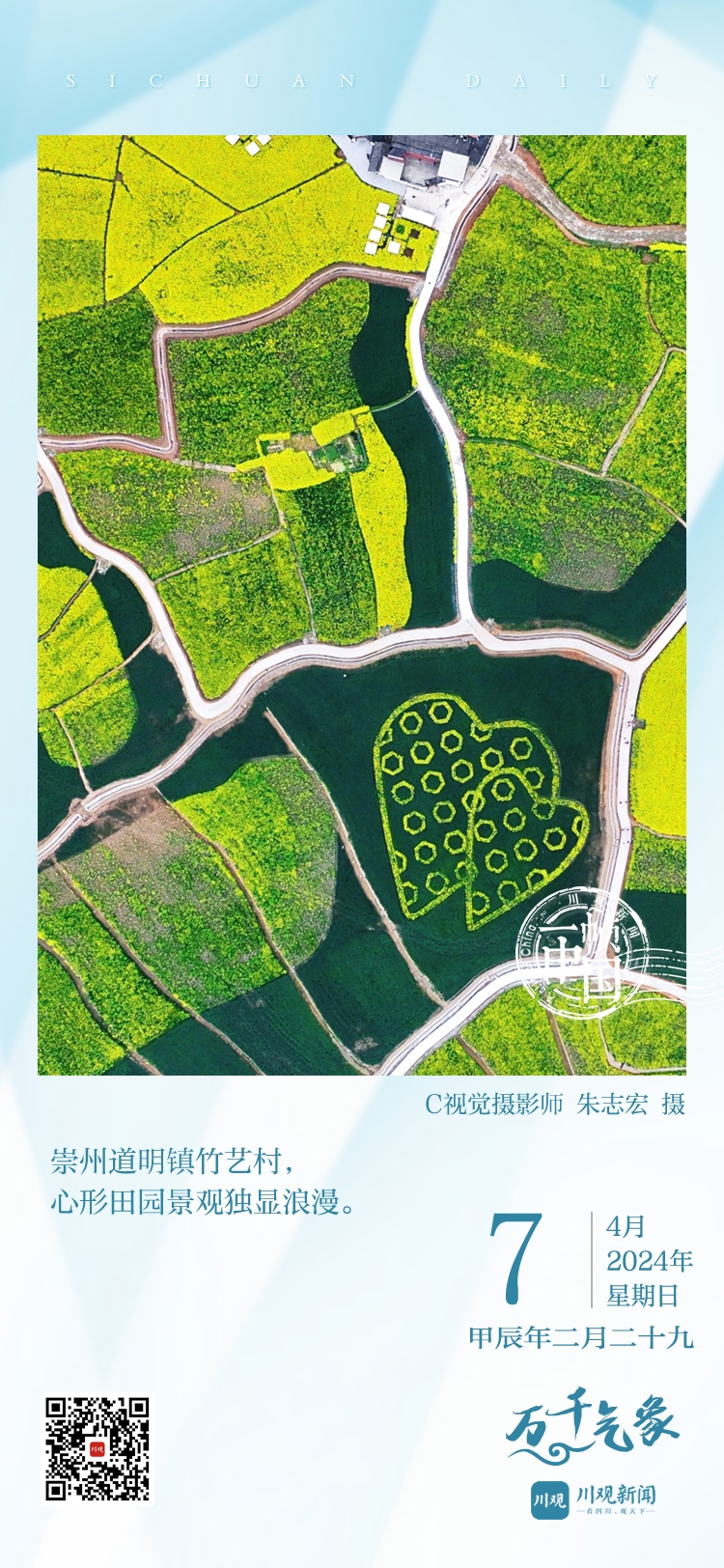今天的《一帧中国》,川观新闻带您来到成都崇州市道明镇竹艺村,感受春日田园的浪漫。