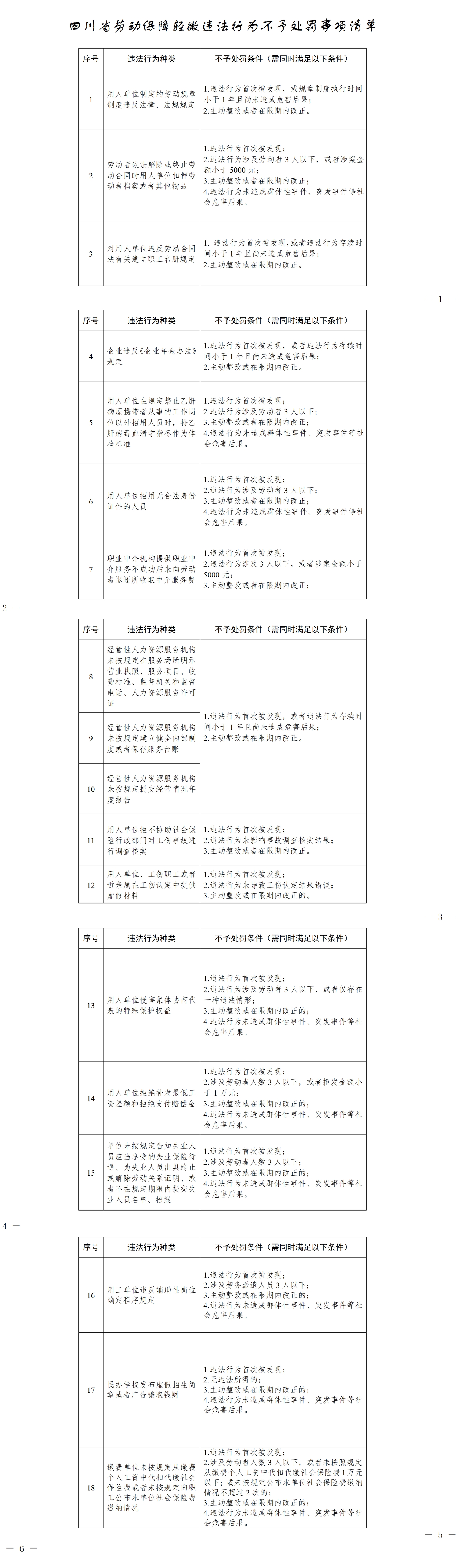以后,四川省人力资源和社会保障厅将不定期根据法律法规的修改废情况,对四川省劳动保障轻微违法行为不予处罚清单进行更新修订。