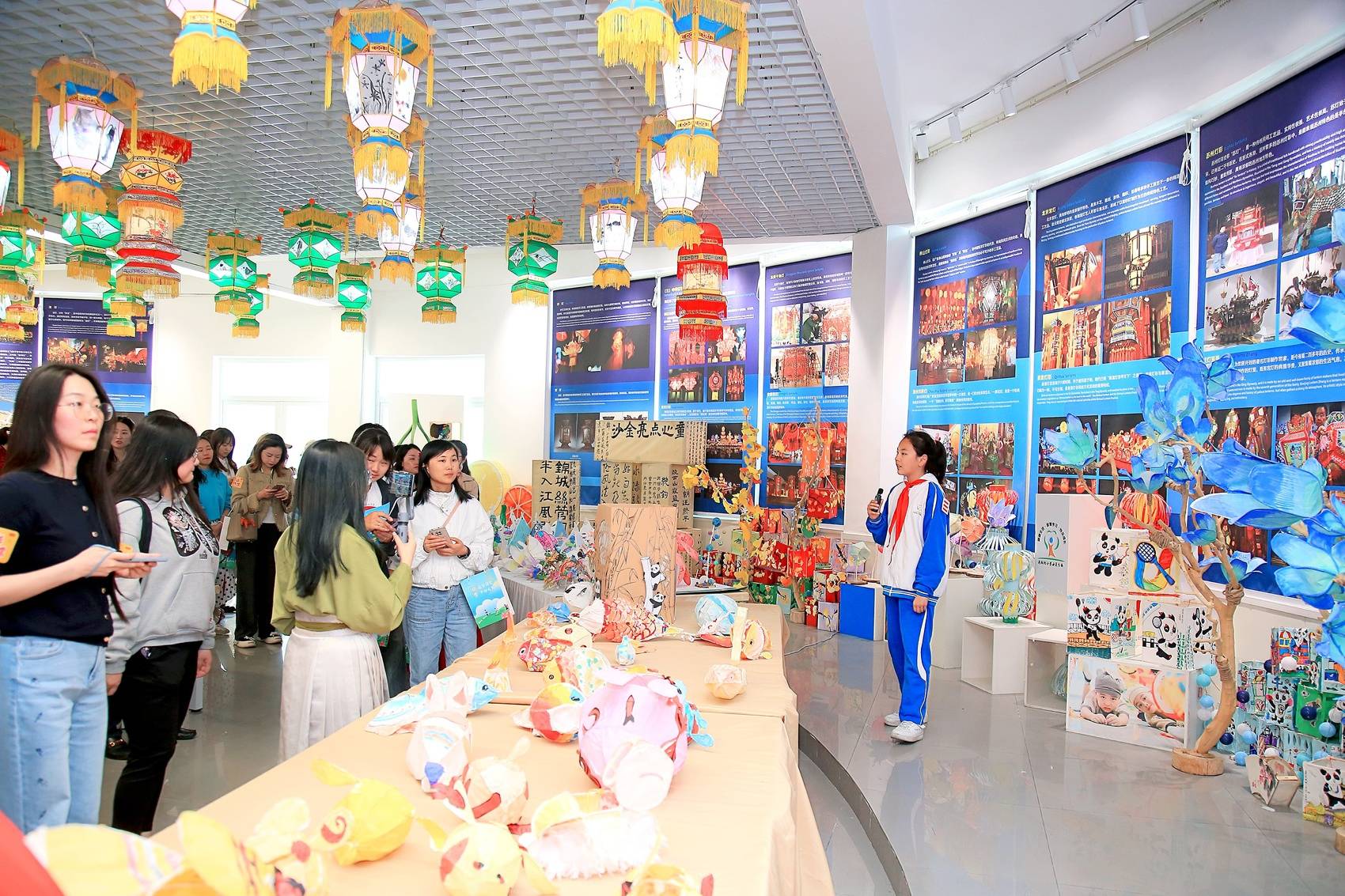 活动期间,与会嘉宾首先参观了成都市泡桐树小学西区分校的三个校园博物馆。其中,一个极具特色的微型灯彩博物馆让大家惊叹不已,翩然绽放的芙蓉花灯、绚丽多彩的龙灯、喜庆可爱的鲤鱼灯……这是该校学生到自贡开展彩灯研学后创建的,不仅传承了非遗文化,还集合了各学科的知识点,让每个学科老师都能创作他们的课程魔方。