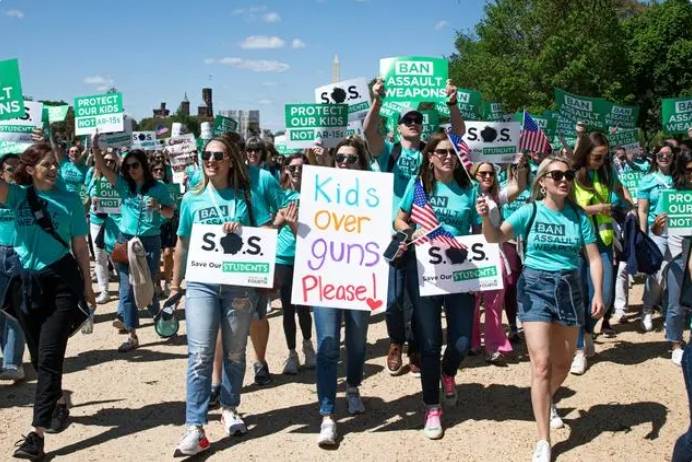 2023年4月17日,人们在美国首都华盛顿参加控枪游行,呼吁禁止销售攻击性武器,应对美国枪支暴力问题。图据新华社