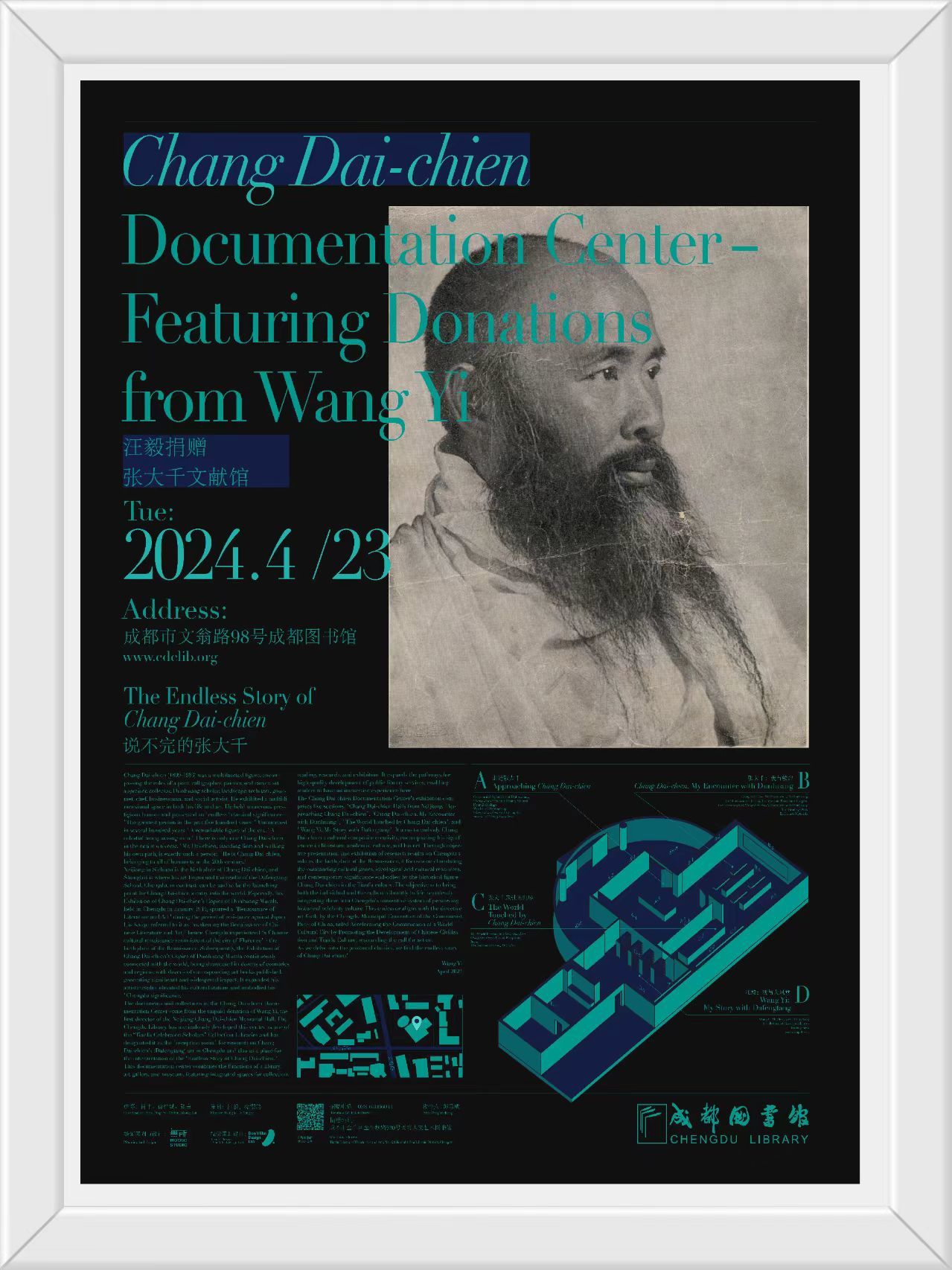 为打造成都张大千艺术会客厅这个有品质的文化空间,彰显张大千“成都意义”,进一步推进成都历史名人文化传承创新工程,聚焦传承发展天府文化,2023年10月,成都图书馆把汪毅捐赠张大千文献馆作为“天府名家藏书馆”之一进行精心打造。该文献馆集图书馆、美术馆、博物馆功能于一体,具有藏、阅、研、展相融合的空间展示,拓展了图书馆公共服务高质量发展途径,有助于读者在这里作沉浸式体验。