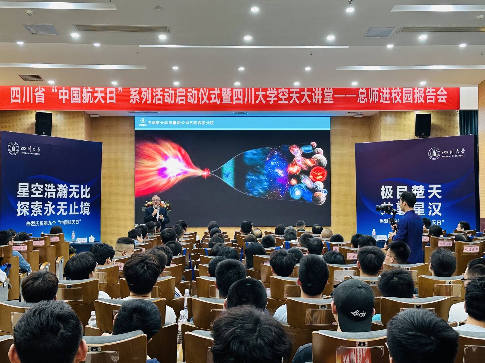 星空浩瀚无比,探索永无止境。4月19日,在第九个“中国航天日”到来之际,“筑梦航天 强国有我”四川省“中国航天日”系列活动启动仪式暨四川大学空天大讲堂——总师进校园报告会在四川大学江安校区举行。本次活动由四川省国防科学技术工业办公室和四川大学等联合主办,旨在弘扬航天精神,推动航天事业发展。