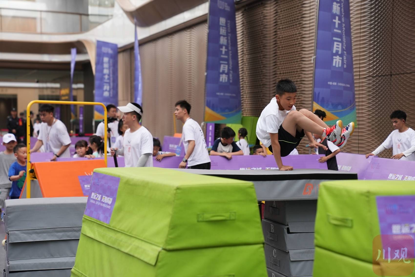 4月21日,成都世运会“世运新十二月市”系列活动四月“跑”市在成都城市地标商圈SKP举行。此次活动以“跑”为主题,跑酷世界冠军与众多不同年龄段的运动爱好者“跑”进商圈,还有地掷球、FPV无人机竞速和交互绳等冠军团队惊喜亮相带领市民体验潮流项目,在中国传统的谷雨时节之后,一起种下一颗世运的种子。