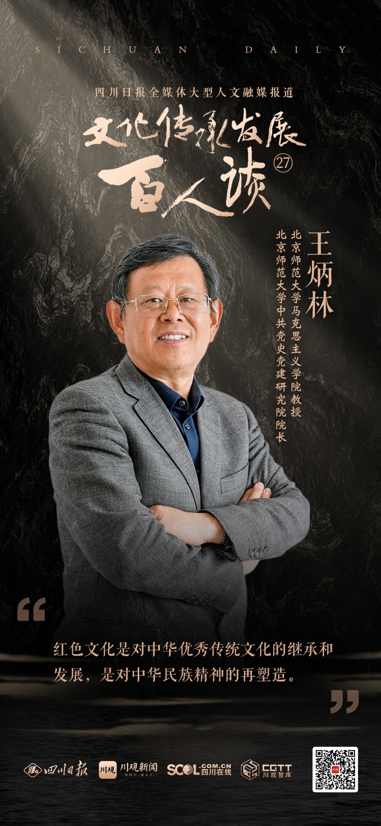 四川日报全媒体“文化传承发展百人谈”大型人文融媒报道持续推出,文化大咖们都有哪些独到观点?我们汇总了部分精彩发言,一组海报带你看21—30期精彩语句集锦。