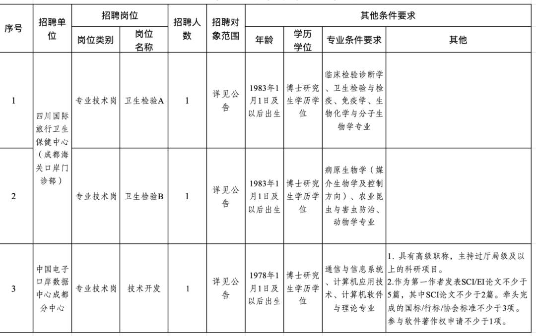 面向全国考核招聘符合《成都海关所属事业单位2024年公开考核招聘工作人员岗位和条件要求一览表》(以下简称《岗位和条件要求一览表》)(附件1)相关岗位条件要求和本公告其他要求的人员。