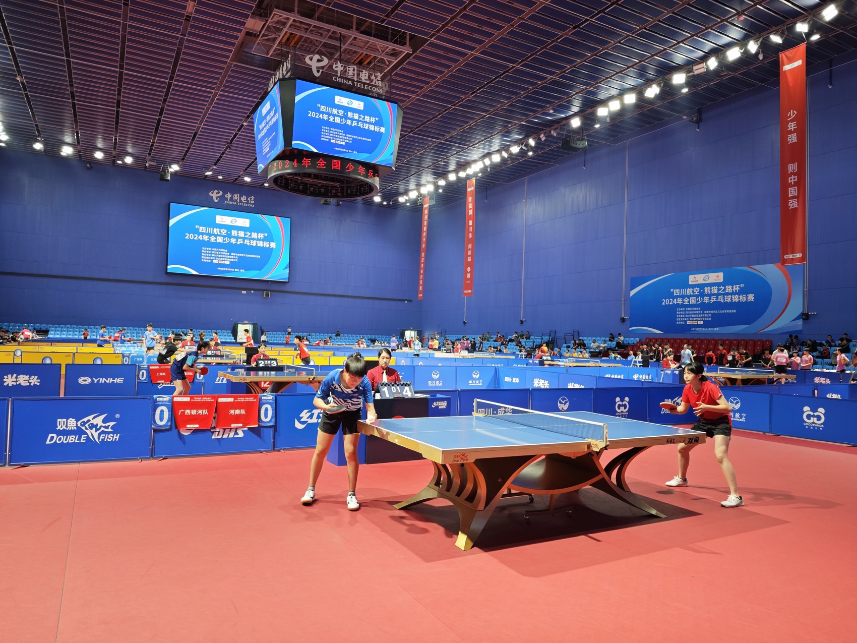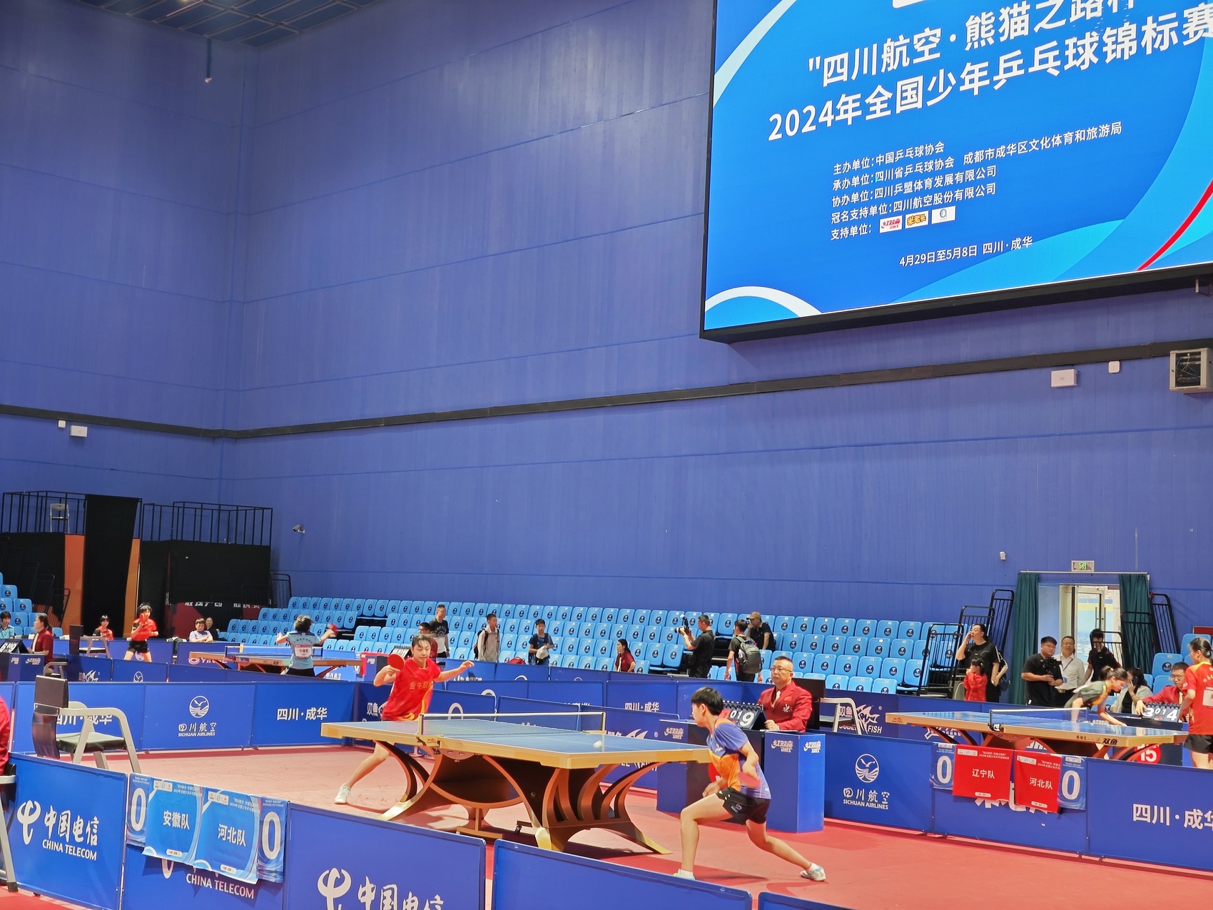 4月29日,由中国乒乓球协会主办,四川省乒乓球协会、成都成华区文化体育和旅游局承办的“四川航空·熊猫之路杯”2024年全国少年乒乓球锦标赛在成都成华区城东体育公园火热开赛。