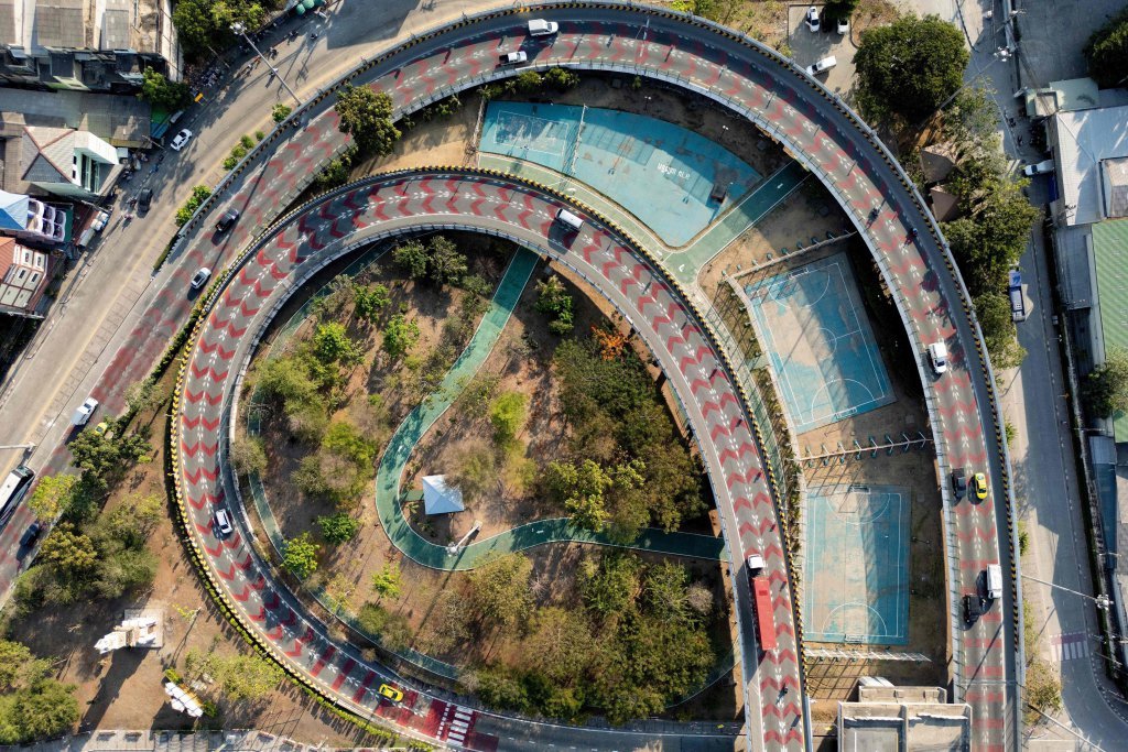 这是4月24日在泰国曼谷拍摄的环路旁的“袖珍公园”(航拍照片)。