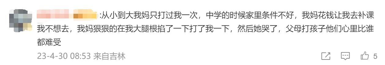 “黄金棍下出好人”的说法已经是过去式,网友表示,没有被打过的,“感觉好幸福”。反之,则留下了一些“童年阴影”。