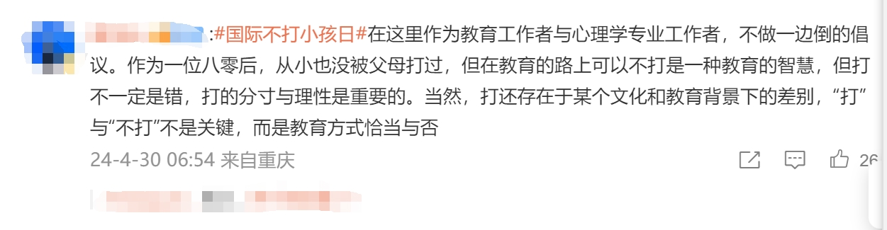 你知道吗?国际不打小孩日也叫不打屁股日,有网友表示不知所以,“涨知识了!”