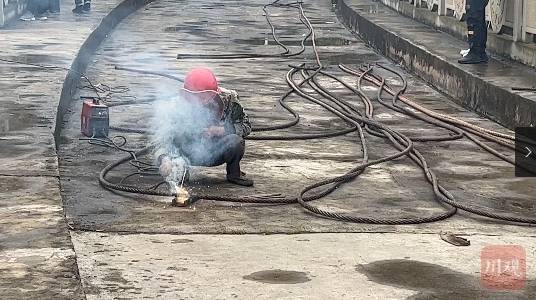 工人正在维修换下的钢筋。